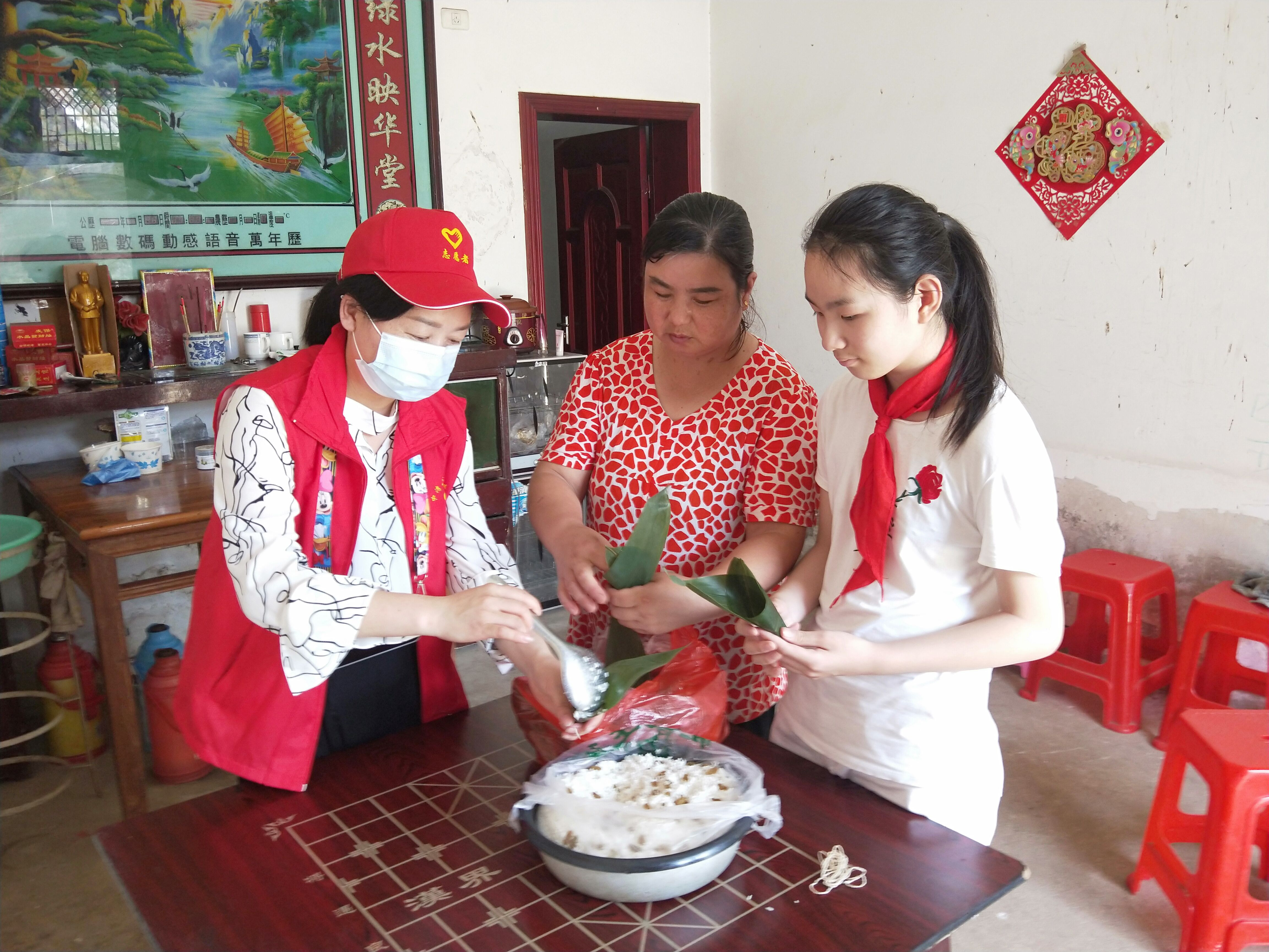 2020年6月16日,疫情期间,学生不能到校上学。中湾小学成立了校委会及班主任志愿者小队,来到六年级学生汪朵家中分享“我们的节日·端午节”传统文化。在汪朵同学家中共同包粽子,提前感受端午节的喜庆。老师一边包一边向学生讲解包粽子需要哪些食材,让学生体验劳动的艰辛并尊重劳动创造者。