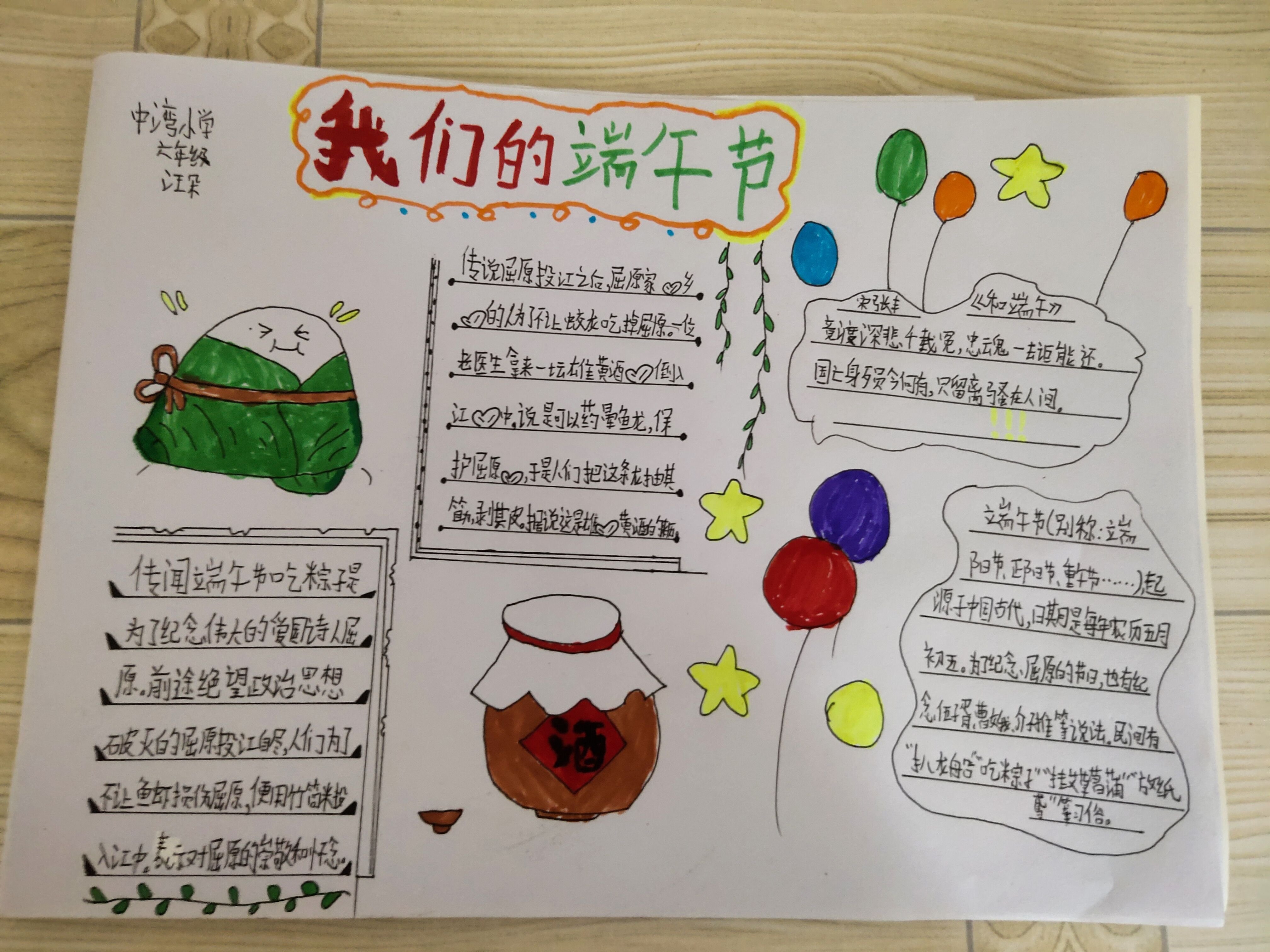 活动主要分为“了解端午节的来历”、“说端午”、“品尝粽子”、送对联、学生手抄报等环节。
