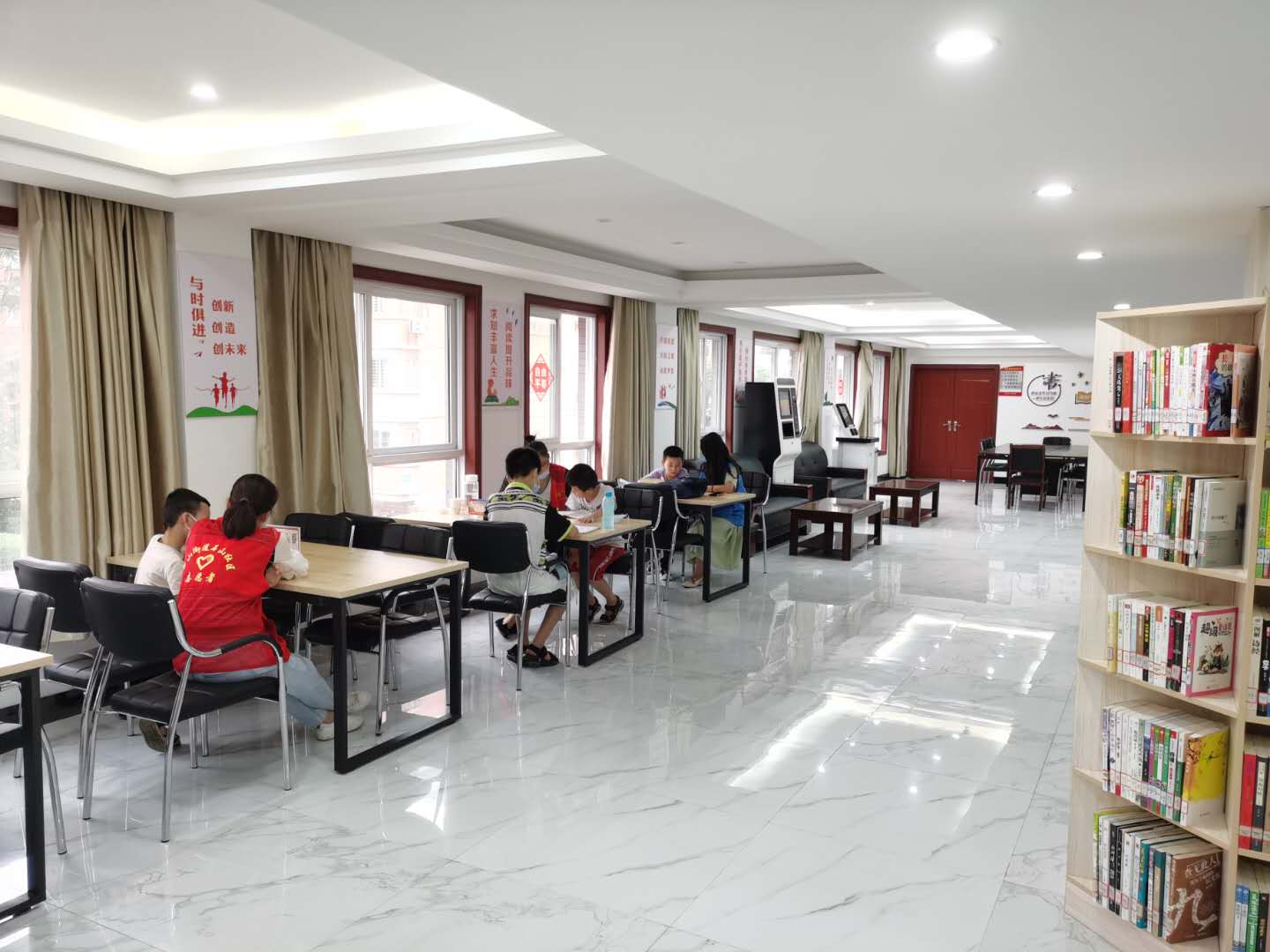 家住和馨居沈女士,休息时候都喜欢带孩子去市图书馆看书,但是由于住得比较远,并不是很方便,这不,她得知社区分馆开馆了,急着带上自家和邻居的小朋友们来了,在这里享受到温馨、舒适的环境。现场还有青年志愿者宣讲社会主义核心价值观、爱国主义思想教育有机结合起来,培养居民积极的人生态度、健康的心理情感、高尚的道德品质。在场的居民们纷纷说:没有想到在自家门口就可以享受到这么好的文化大餐服务。