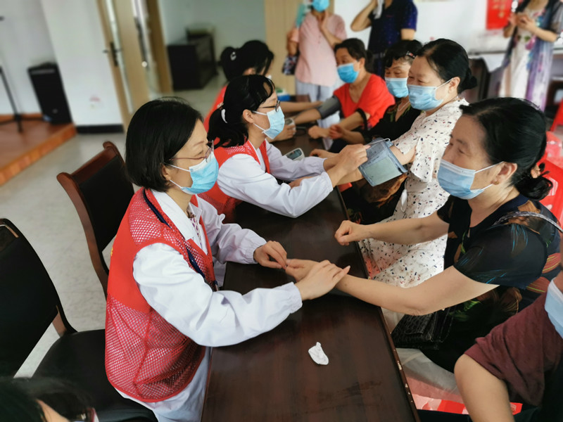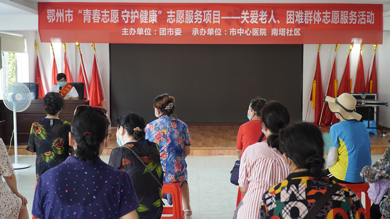 7月24日下午,团市委联合鄂州市中心医院团委青年文明号全科医学科医护志愿者们来到南塔社区,开展“青春志愿 守护健康”——关爱老人、困难群体志愿服务活动。
