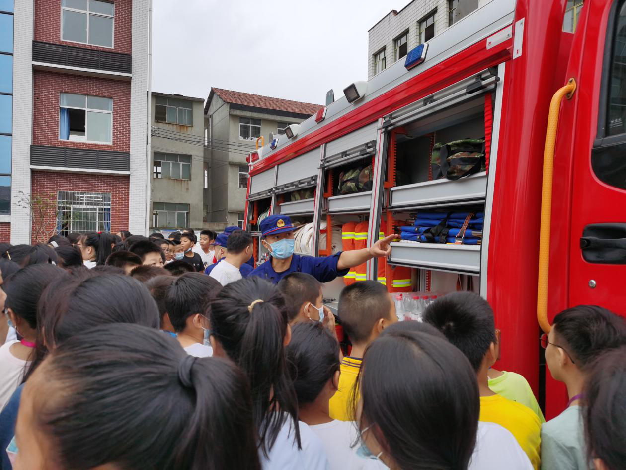 随后,消防大队人员让学生们参观了消防车,并向同学们展示了消防救援装备,介绍了装备性能和使用方法,并现场进行了破拆装备性能演示。