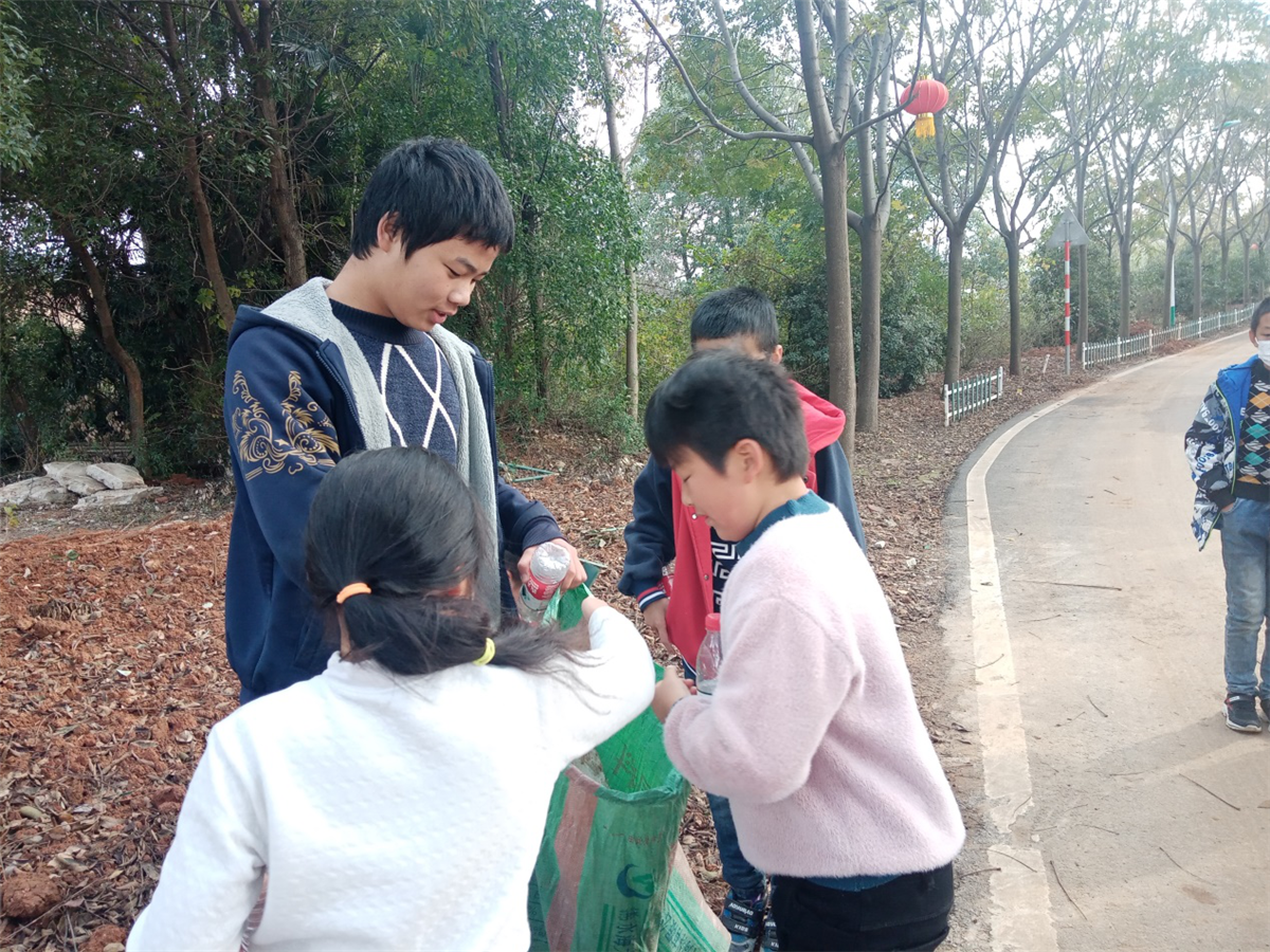 在对垃圾分类有了一定的了解后,孩子们拎着垃圾收集袋沿着武圣村委会附近主干道开始了搜寻。搜寻“目标”的过程中,有的同学捡到了塑料瓶,有的同学捡到了塑料袋,有的捡到了废弃的鞋子,在对垃圾的类别进行分辨后,将它们放入了对应的垃圾收集袋里。
