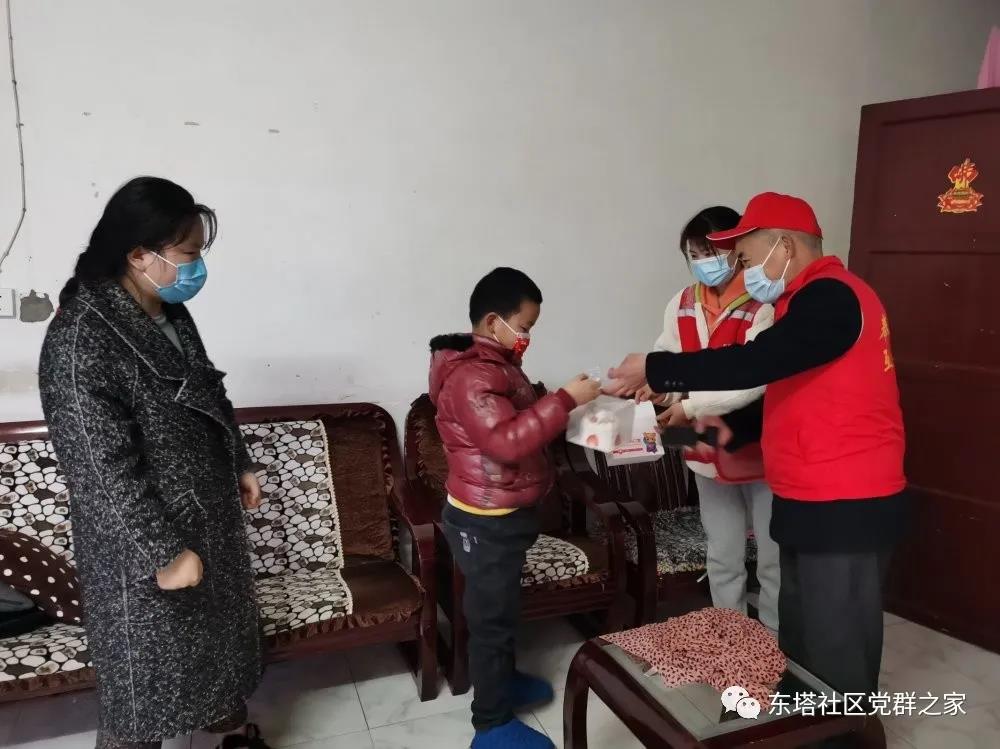 蒙蒙细雨中,人社系统党员与社区网格员、青年志愿者一起带上新鲜的蛋糕和儿童防护口罩深入各小区,给孩子们送去社区大家庭的浓浓关爱和新年祝福!