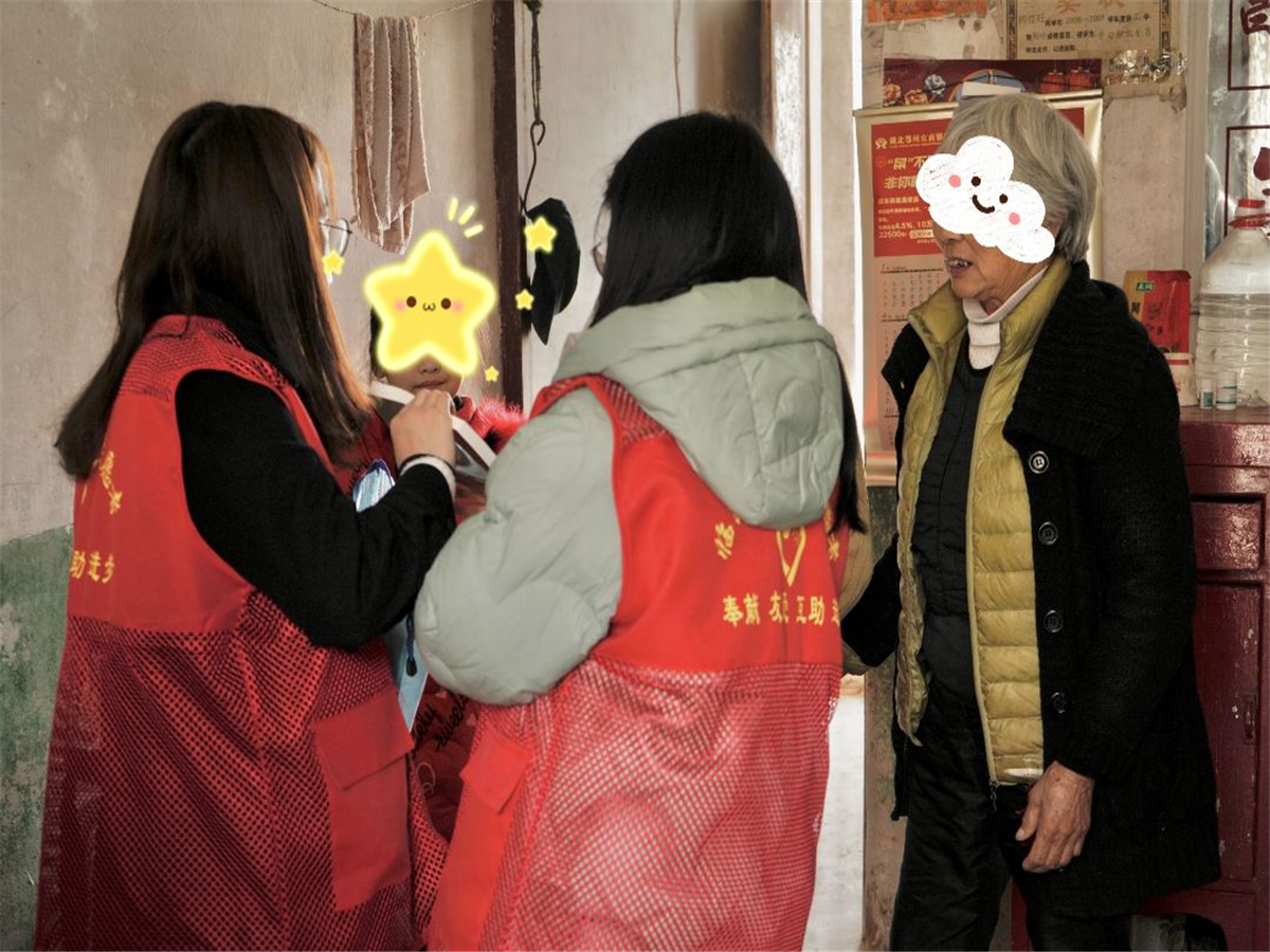 “党和政府的政策好啊,你们时常照顾,给我和他奶奶减轻了不少压力,他心心念念的篮球你们上次送来了,这次又提了牛奶和八宝粥过来,平时我们都舍不得买,真的感谢党!感谢政府!感谢你们!”还未进门,粑铺村的包爷爷就在连连道谢,然后跟志愿者们说着党和政府的帮扶。
