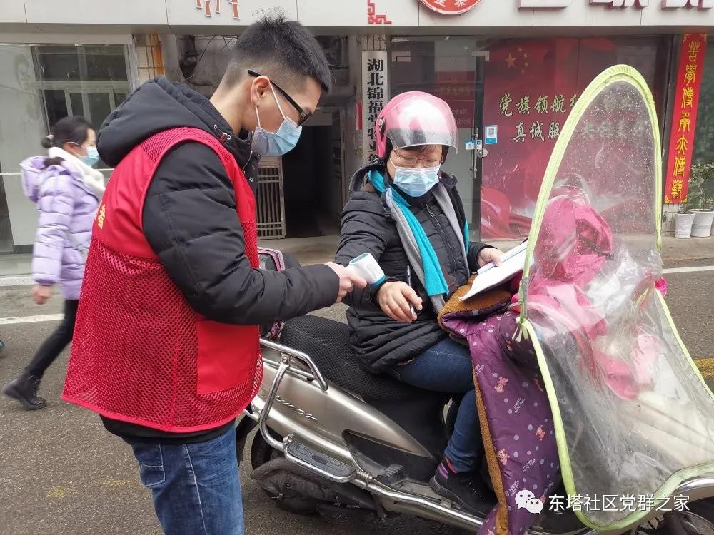 在东塔社区党群服务中心门前返乡人员登记卡点上,预备党员志愿者高铭熟练地给小区居民测完体温后,习惯性地叮嘱道。