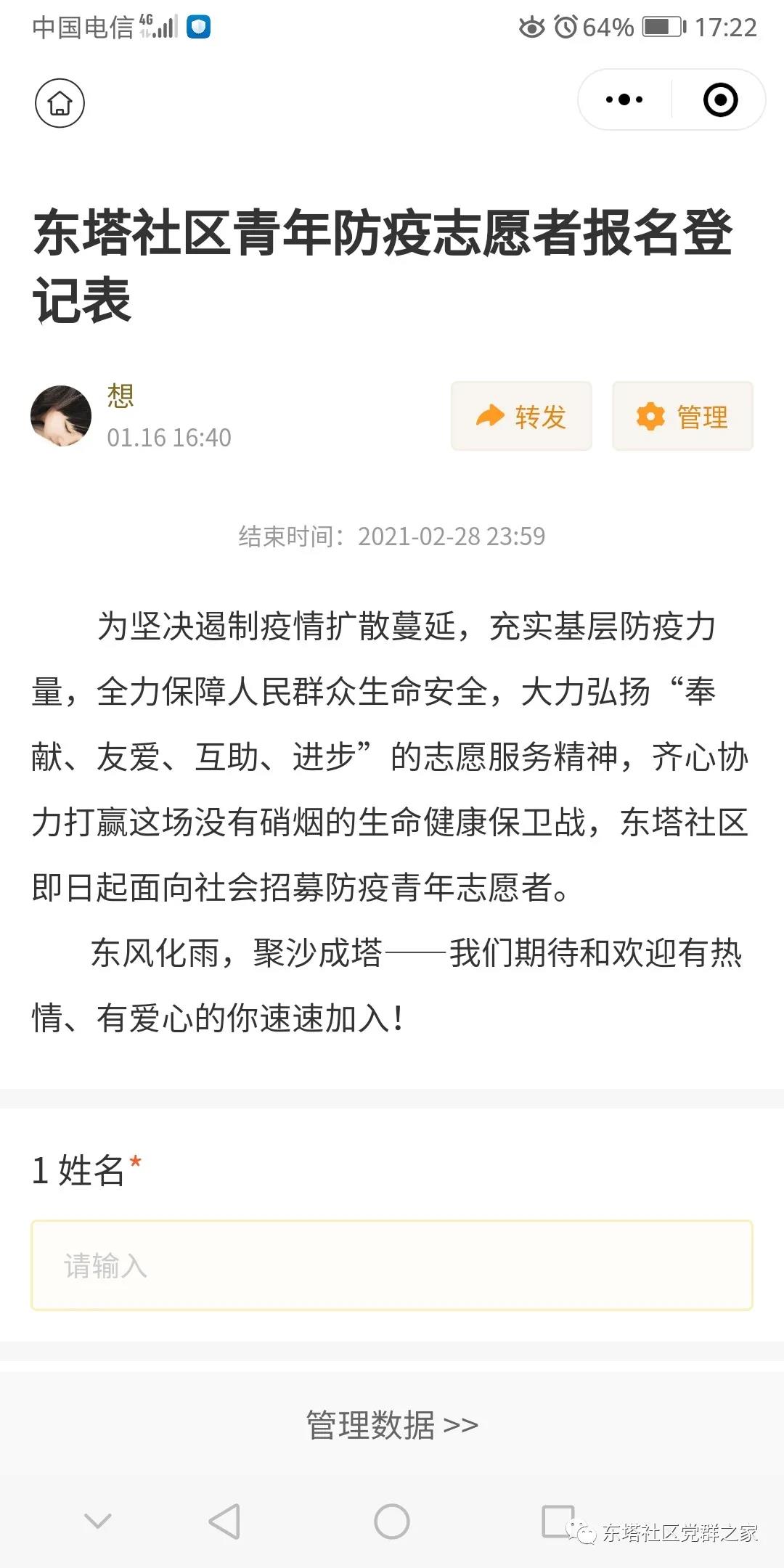自社区防疫志愿者招募令发布后,得到了辖区党员、返乡大学生、团员青年及热心居民的积极响应,带着一颗颗炽热的奉献之心走进社区。