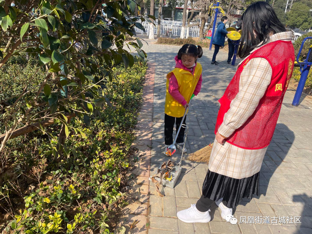 活动前夕,社区小太阳志愿服务端小志愿者得知社区倡导开展“亲子卫生大扫除”活动,就主动提出要带着家长到社区参与志愿服务。活动开始,在古城社区工作人员的带领下,小志愿者协同家长们拿着扫帚、夹子、铲子等工具出发,到书香小游园内清扫白色垃圾,清捡绿化带内隐藏垃圾、烟蒂等,不留一点卫生死角。