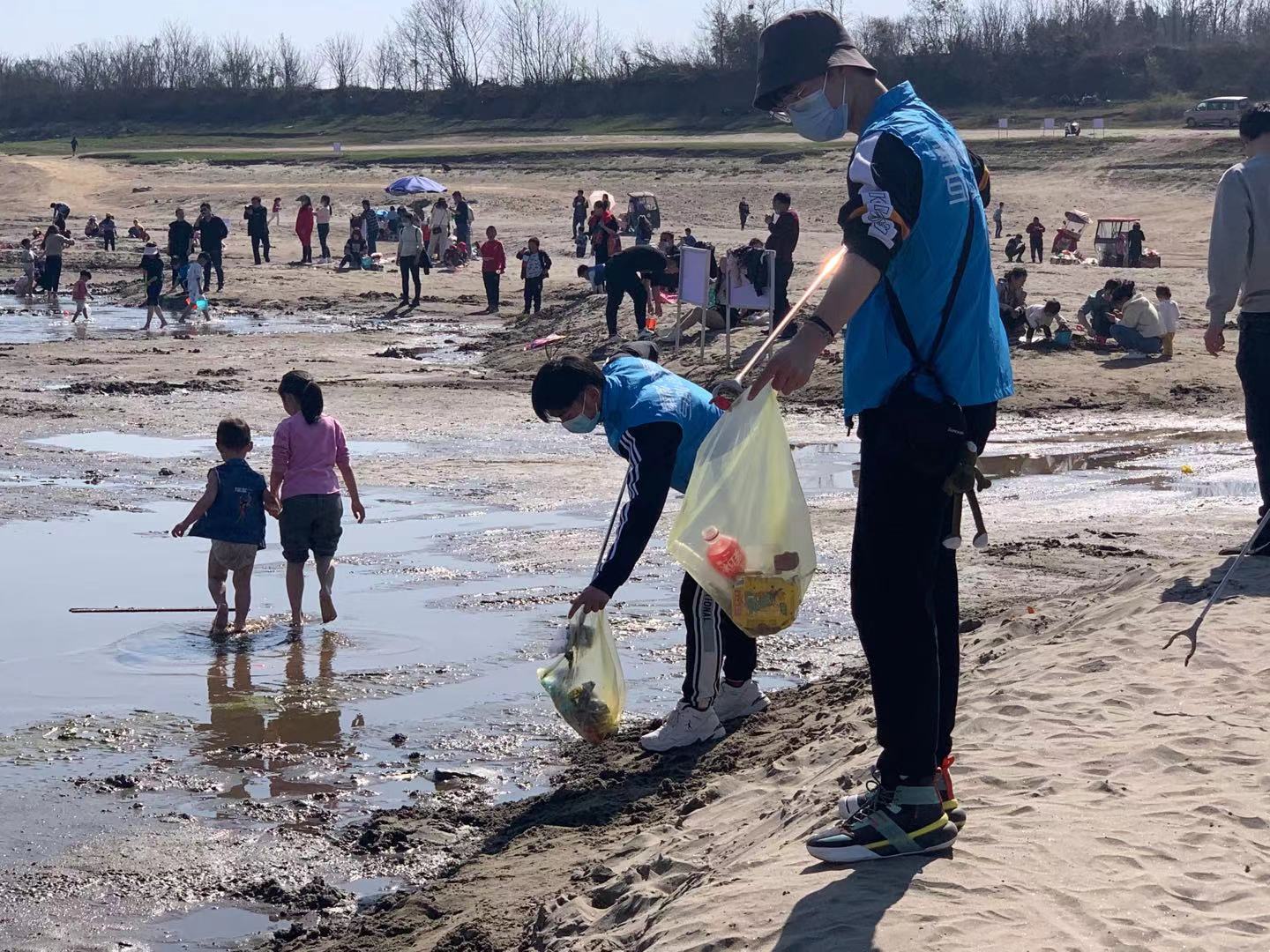 在网红沙滩上,志愿者们正以饱满的热情投入到捡拾垃圾、文明劝导等志愿服务中,大家身穿“蓝马甲”,三人一组、五人一群,分工协作、默契配合,顺着人群聚集的地方捡拾各类垃圾和杂物,形成长江边的一道靓丽风景。经过大家的共同努力,江堤变得干净整洁,环境面貌焕然一新。