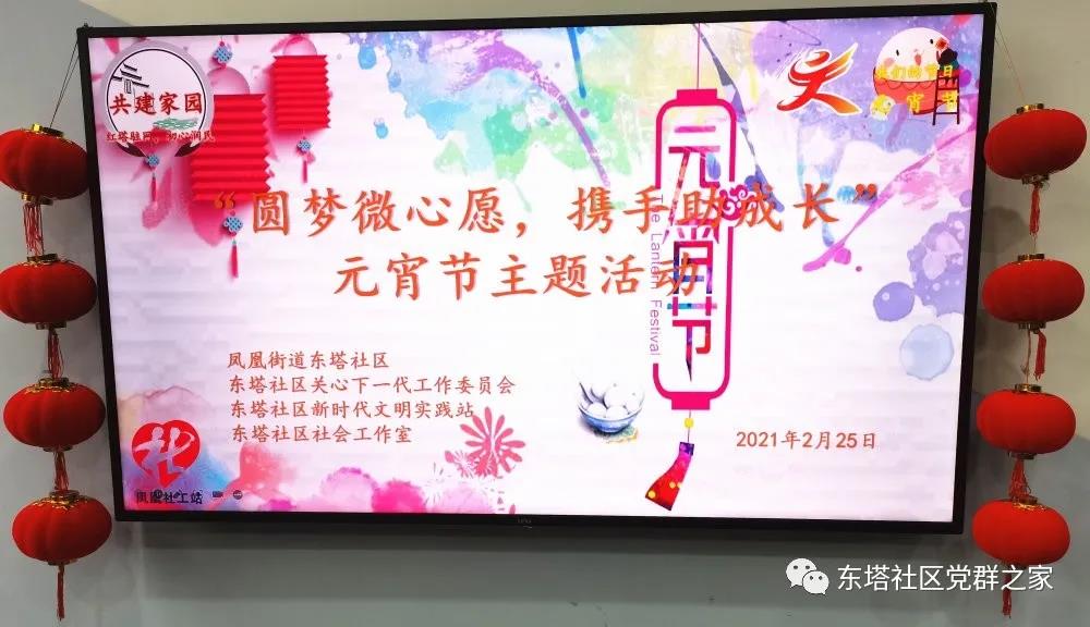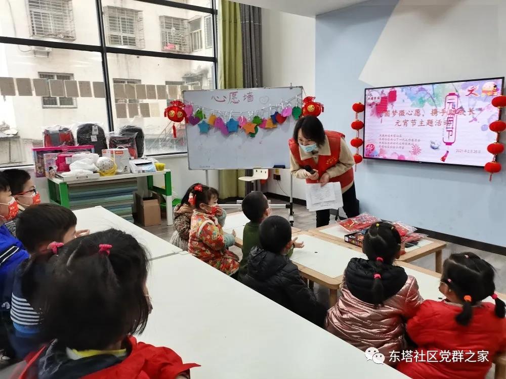 为营造欢乐祥和的节日气氛,大力弘扬和推广传统文化,关爱祖国下一代,给辖区留守、困境儿童送去社区大家庭的关怀和温暖,促进亲子和邻里互动交流,共建和谐家庭、文明社区,2月25日上午,由东塔社区联合社工室精心筹备的“我们的节日”之“圆梦微心愿,携手助成长”主题元宵节活动在社区新时代文明实践站二楼“四点半”课堂如期举行。