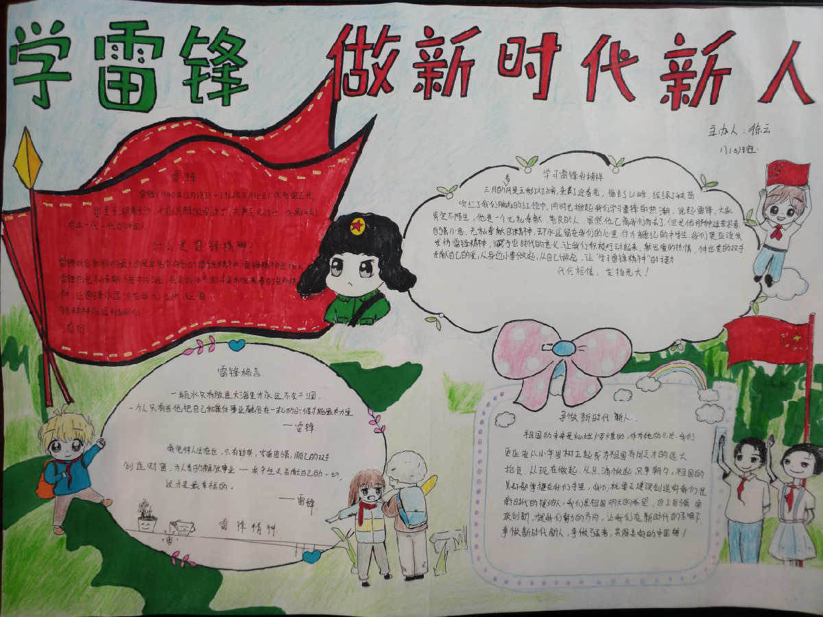 3月10日,蒲团中学政教处组织开展了一期主题的黑板报和全校学生手抄报评比活动。同学们踊跃参与,精心设计,将自己对雷锋精神的感悟,浓缩在手抄报中,更好地引导学生了解雷锋事迹,弘扬雷锋精神,传播正能量,营造积极向上的学习氛围,倡导校园文明新风。