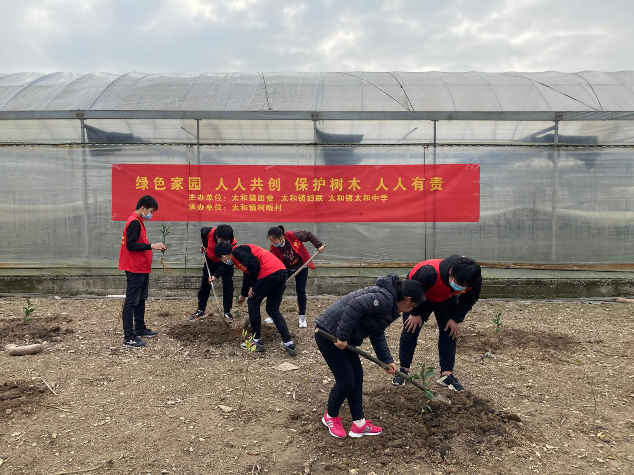 阳春二三月,草与水同色。正值第43个植树节到来之际,3月12日下午,太和镇联合太和中学、柯畈村共同开展“绿色家园人人共创 保护环境人人有责”植树活动。