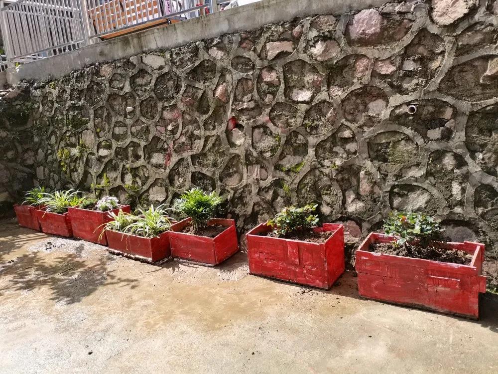 种上万年青、月季、三角梅、袖珍椰子后,长期历史遗留的卫生死角终于蜕变成又一道春天的景!