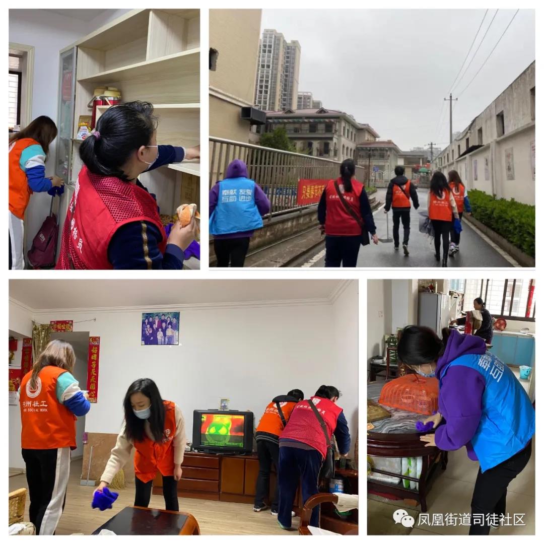 得知家里的卫生平常也只有腿脚不便的婆婆抽空做做后,志愿者们便立刻忙碌起来了,大家分工协作、相互配合,有的扫地,有的擦桌子,有的帮忙收拾衣柜,还有的则将平时够不到的窗户玻璃都擦得干干净净,让老人的心里和屋里都亮堂了起来。