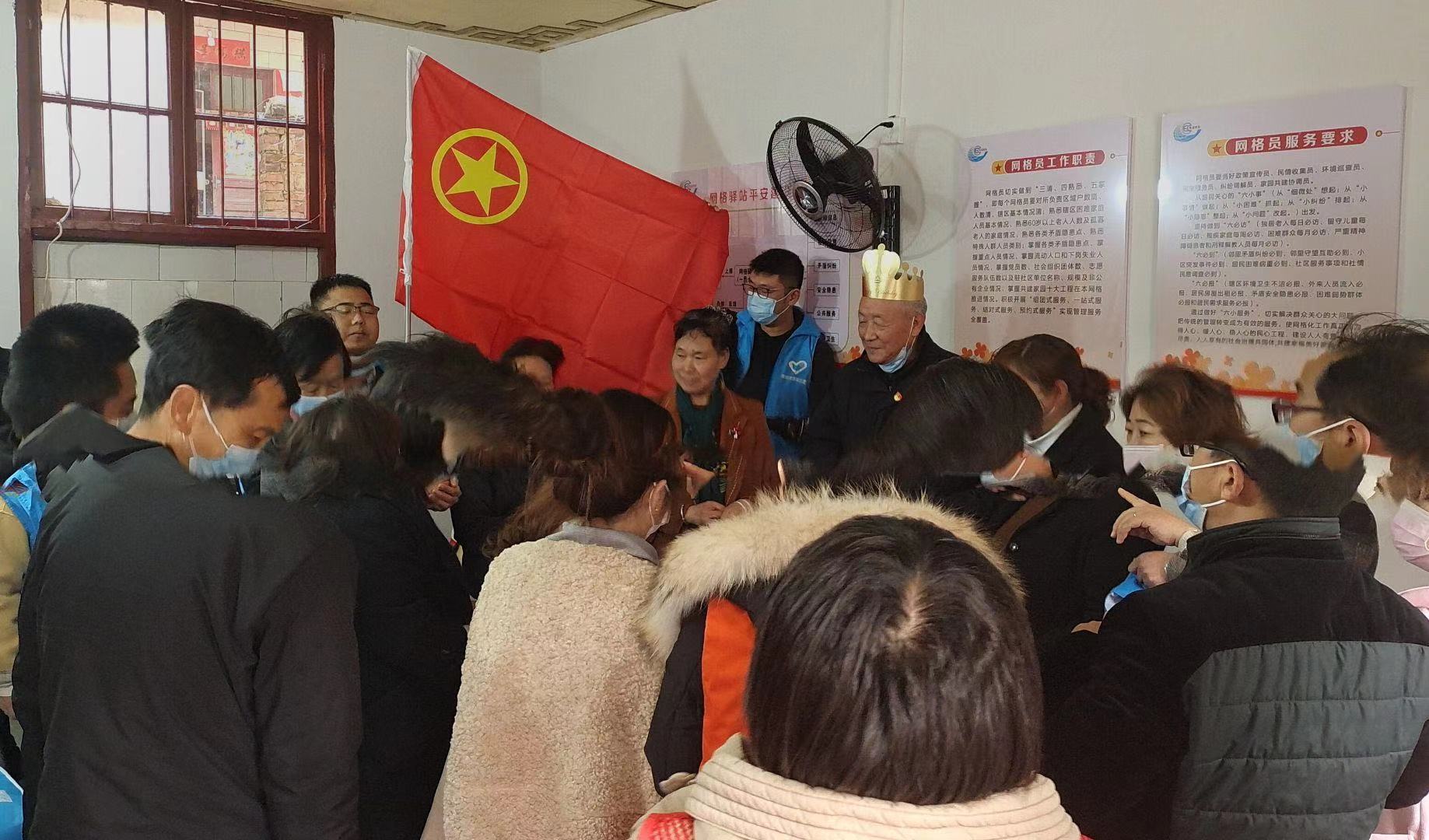 戴寿星帽,唱生日歌,点蜡烛,许愿,吃蛋糕,送祝福,今日,雷山社区a网格驿站热闹非凡,团员和青年志愿者们一起给辖区老党员江村华过七十岁生日。