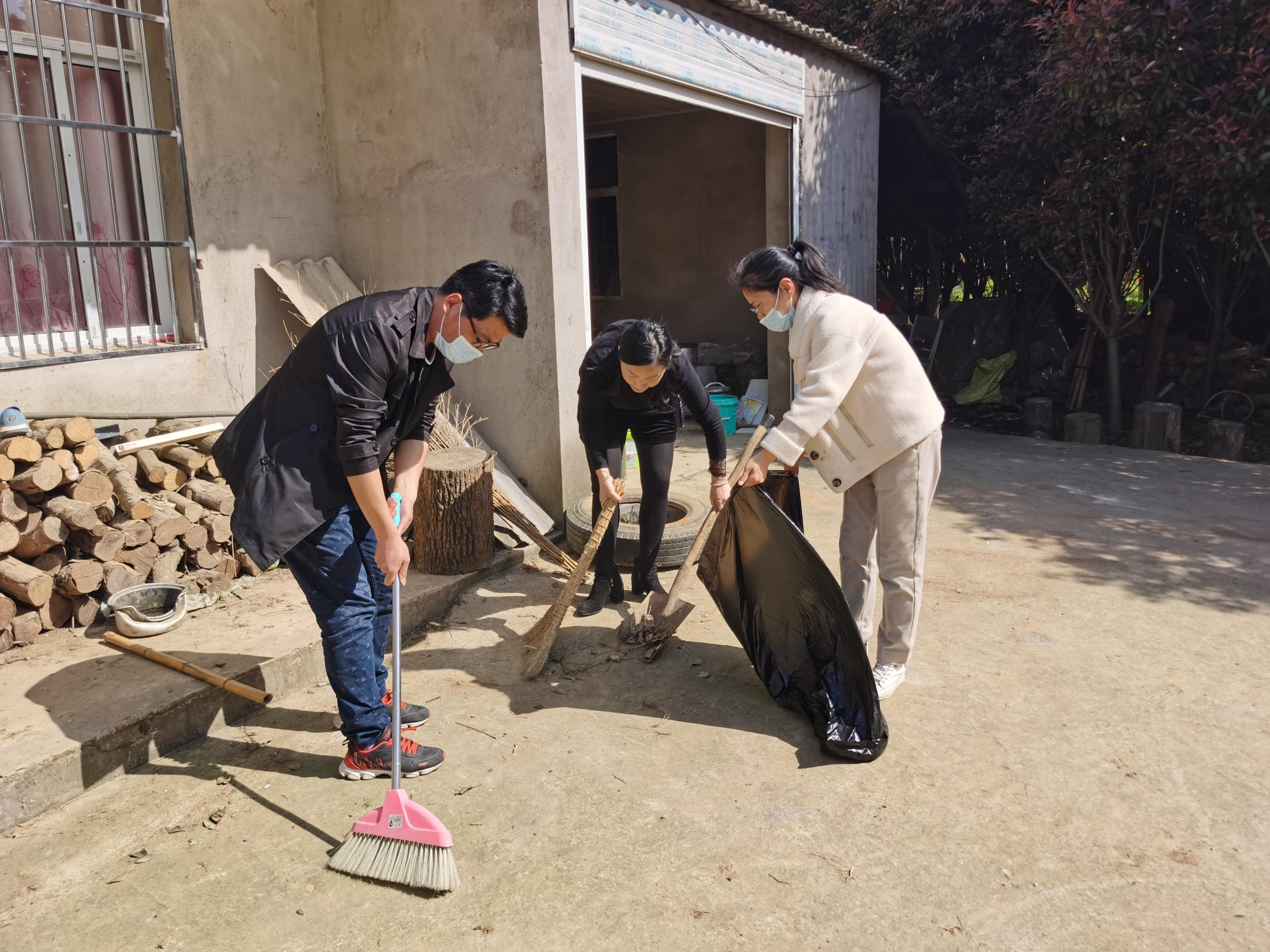 在实验小学党支部书记汤华峰同志的带领下,党员志愿者们手拿扫帚、铲子、垃圾袋等工具把乡道两侧、屋前屋后的落叶、垃圾一一进行清理。大家不怕脏,不怕累,经过两个小时的清扫,村庄变得干净整洁、焕然一新。