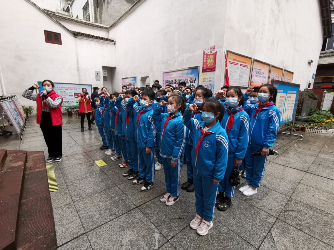 少先队员代表们在丁美艳校长及校委会所有成员、大队辅导员的带领下,穿戴整齐,佩戴红领巾,首先来到了北伐军二十军军部旧址,参观贺龙元帅军部旧址。