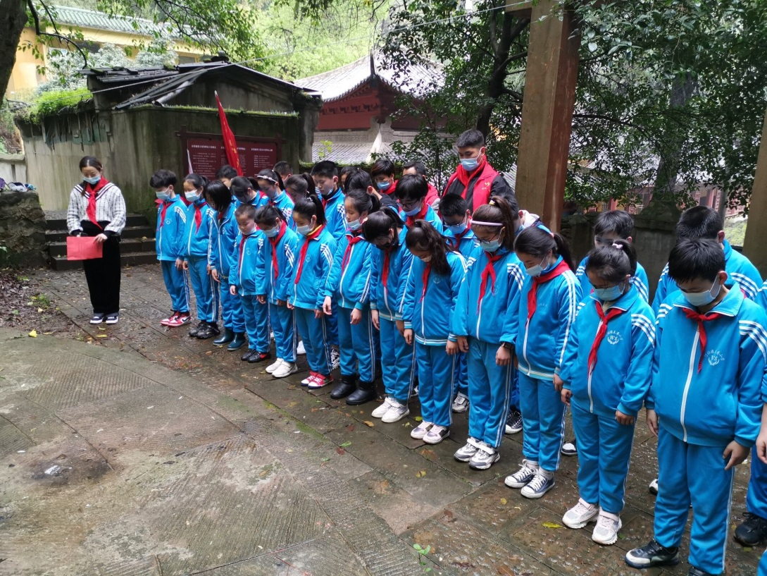 在参观完贺龙元帅军部旧址后,我们来到位于西山上的彭楚藩烈士墓前,在大队辅导员的主持下,祭扫活动正式开始。