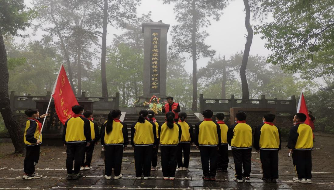 2021年3月30日上午9:00,阴云低垂,春雨飘飘。一年一度的清明节来临之际,丁祖小学六年级的学生代表怀着无比崇敬之情,在瞿校长的带领下前往鄂南抗日根据地指挥中心纪念碑前,开展祭奠英雄烈士活动,深切缅怀为国家尊严献出宝贵生命的革命先烈们。