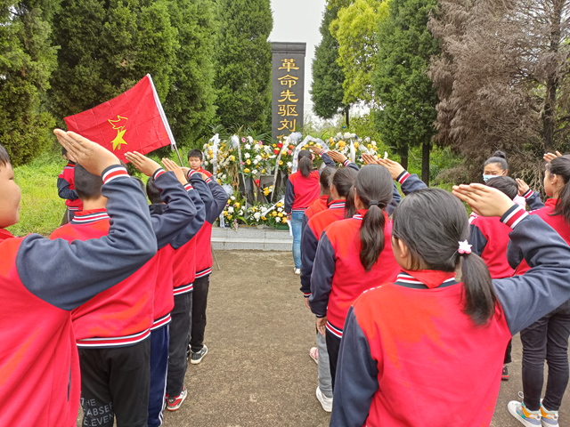 伴随着庄严的国歌,全体少先队员在庄严肃穆的烈士墓前肃立默哀,向烈士纪念碑敬献花篮,表达对烈士的崇高敬意和深切悼念之情。默哀仪式完毕后,由少先队员代表献词,随后全体少先队员在在烈士墓前宣誓: 热爱祖国,热爱人民,好好学习,好好锻炼,争做新时代好少年!活动结束,同学们又怀着对烈士的怀念和崇敬之情,参观了刘伯垂纪念馆,整个活动虽然时间不长,但少先队员们受益颇深。