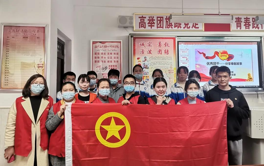 社区团支部书记胡娟娟带领社区团员、网格员和社工一行等青年志愿者,来到育才中学行政楼2楼的课堂开展团日活动,社区一行人负责维持课堂秩序。首先,全体齐奏团歌,随后由团支部李老师带领大家重温入团誓词,然后正式开始此次活动。