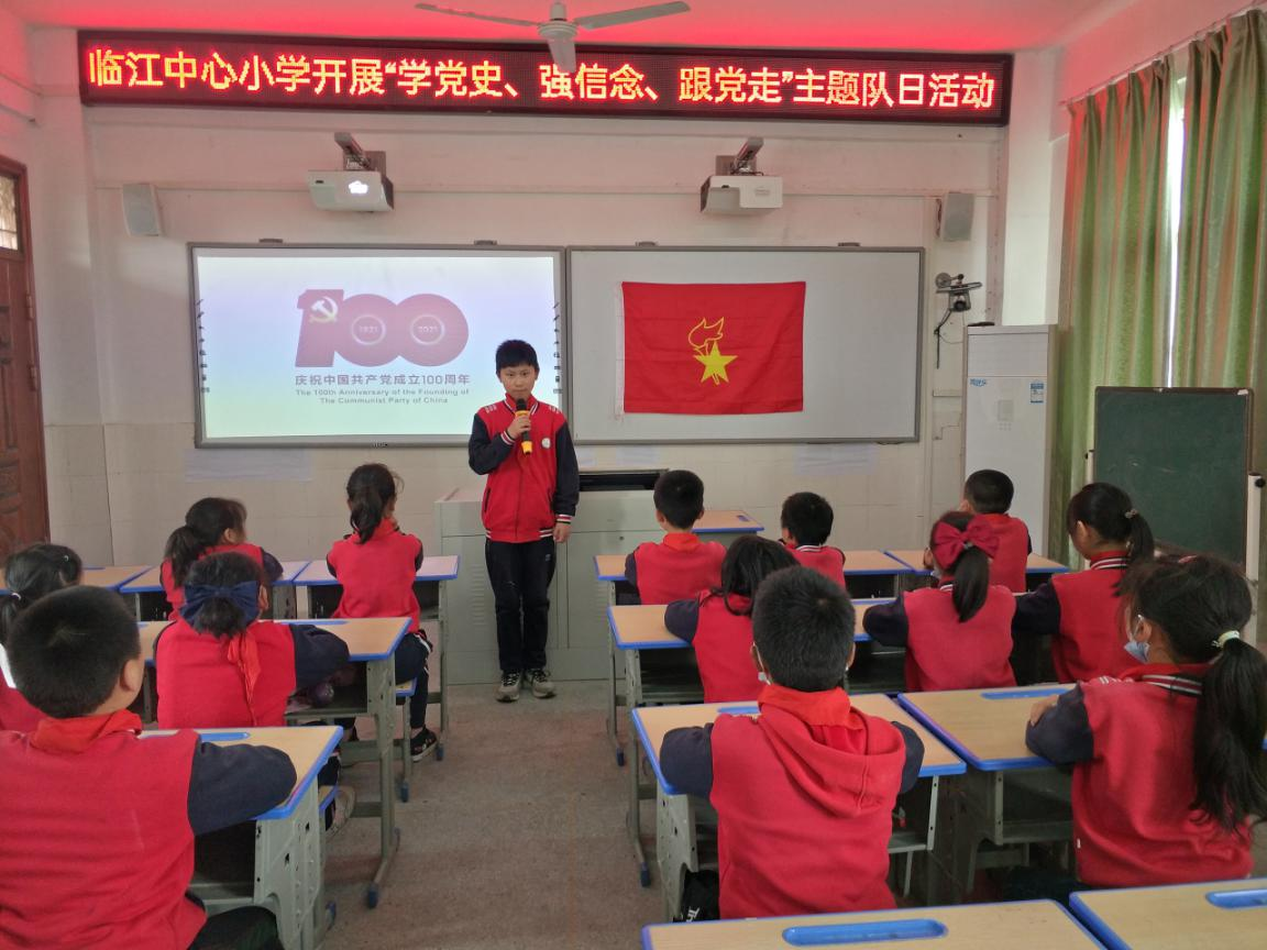为热烈庆祝中国共产党成立100周年,培养少先队员爱党、爱国、爱社会主义的情感。临江中心小学4月15日开展了“红领巾心向党”学党史,强信念,跟党走系列教育活动,让红色基因革命薪火代代传承。