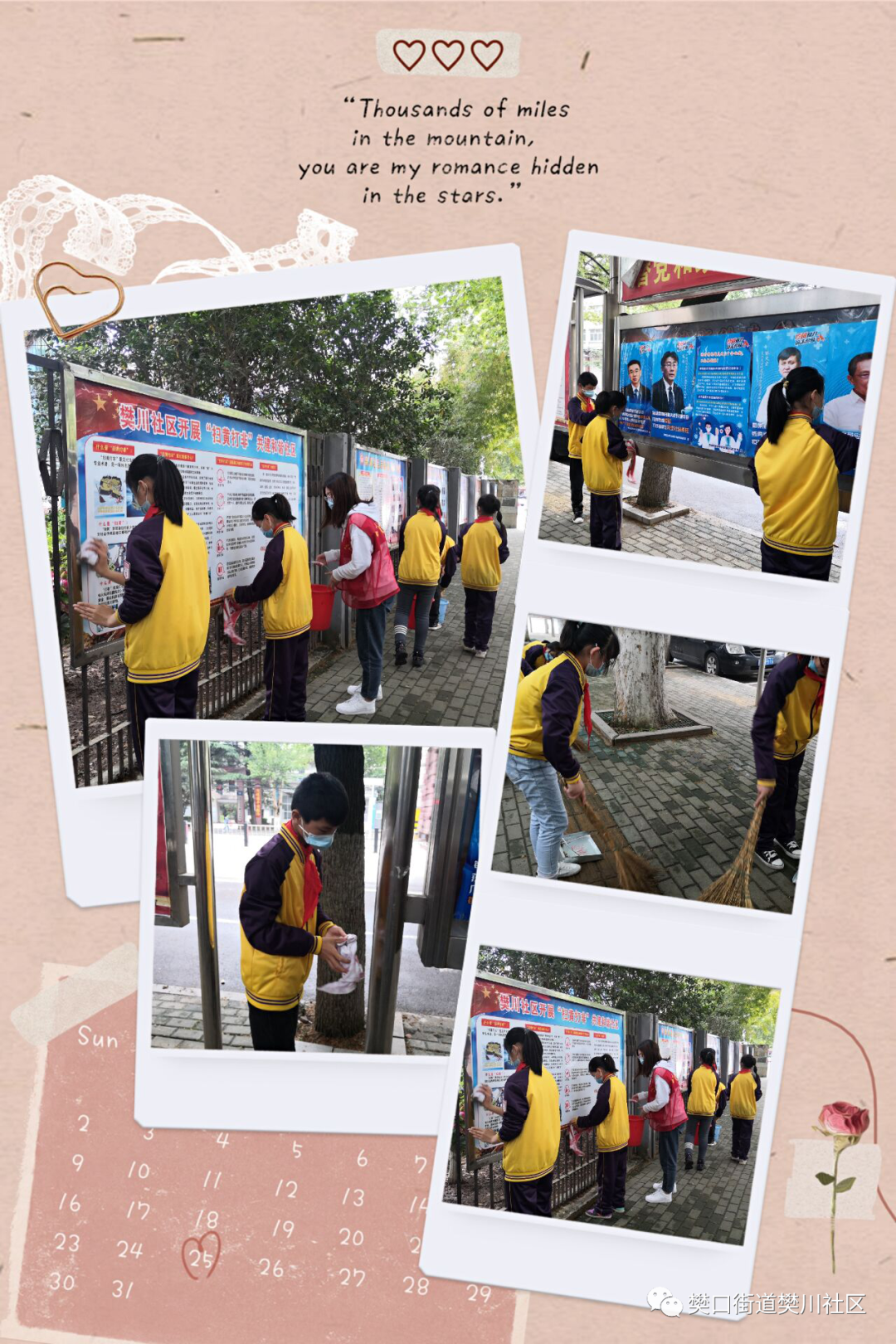 为进一步弘扬五四精神,倡导文明新风,彰显时代精神和青春价值。4月22日,樊川社区组织社区20余名青年志愿者及樊口中心小学学生开展“5.4”青年节“大手拉小手 劳动最光荣”清洁家园活动。