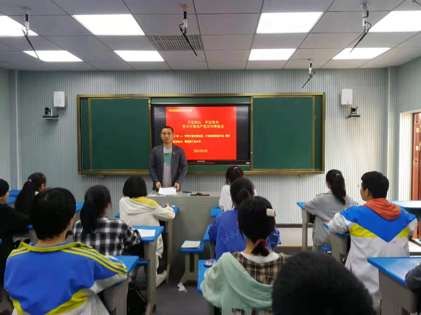 4月21日,汀祖镇团委走进汀祖中学,开展党史学习教育活动。镇团委副书记周辉同志为全校19名入团积极分子带来了一堂以“共青团的光辉历史”为主题的精彩团课,从团的三个发展阶段、两个历史事件、十七次会议展开宣讲,教育大家要始终保持先进,从身边小事做起,在各个方面起到良好的榜样示范作用,争取早日成为一名合格的共青团员。