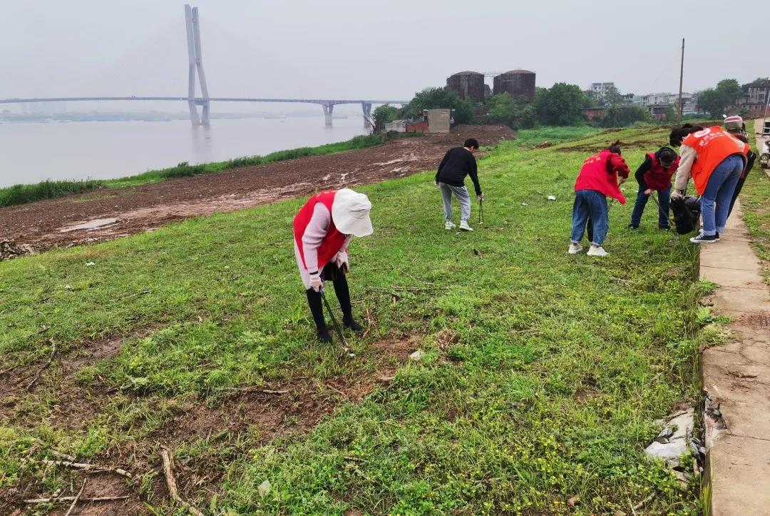 慰问完后,大家又一同手持垃圾袋和火钳等清洁工具,来到留守困境儿童小区附近的江堤,将沿途路人丢弃路面上、草地中的纸巾、果皮、白色塑料袋等各种生活垃圾捡起并集中装袋,随后丢至就近的垃圾桶内。