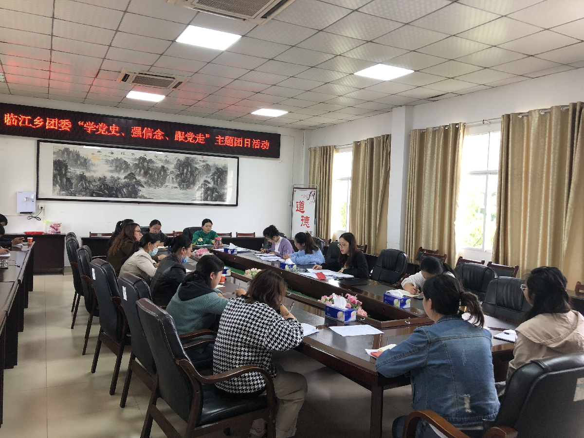 为庆祝中国共产党成立100周年,学习贯彻习近平总书记在党史学习教育动员大会上的重要讲话精神,深刻感悟党的初心使命、领会党的创新理论、体认党的精神谱系、传承党的红色基因。4月26日下午2:30,临江乡团委在临江乡政府二号会议室开展“学党史、强信念、跟党走”主题团日活动暨4月份工作例会。乡团委全体人员、机关支部团员、各村团支部书记参加此次活动。