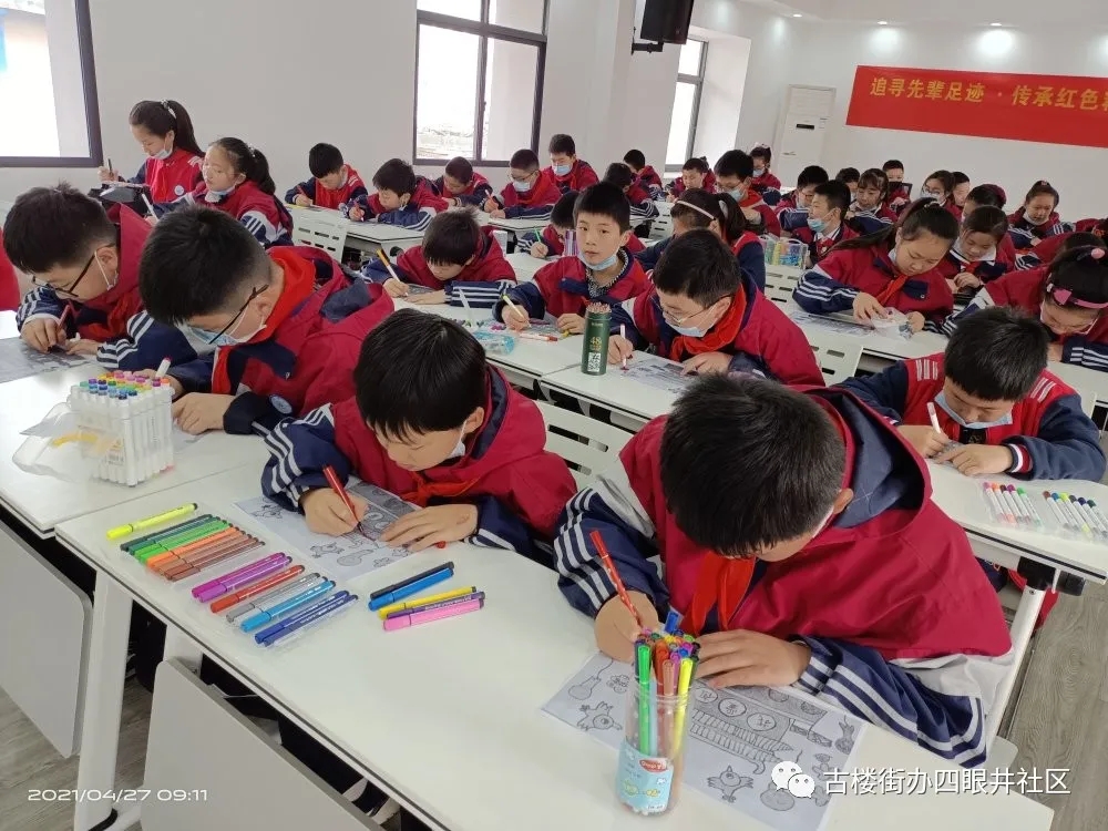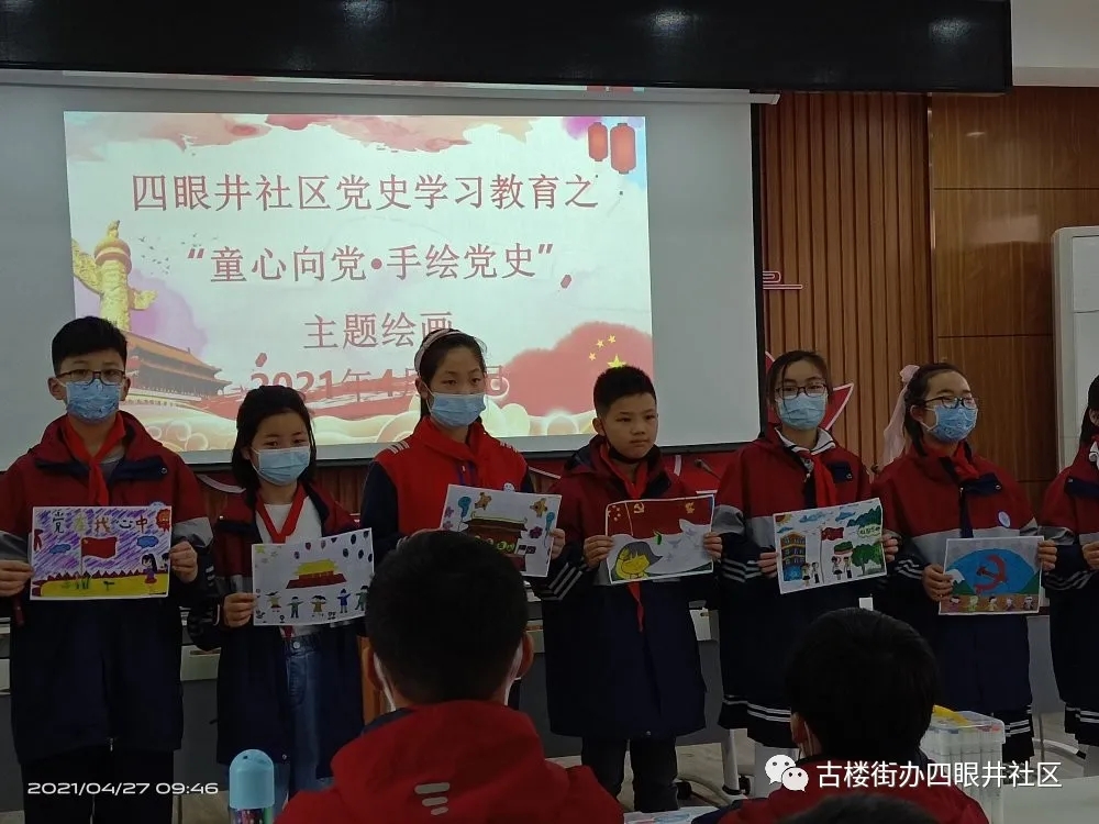此次活动是四眼井社区学党史进校园系列活动之一,旨在让学生了解党的历史,知晓党的丰功伟绩,感恩当今来之不易的幸福生活,将用爱党、爱国、爱社会主义情怀立志今后的道路。