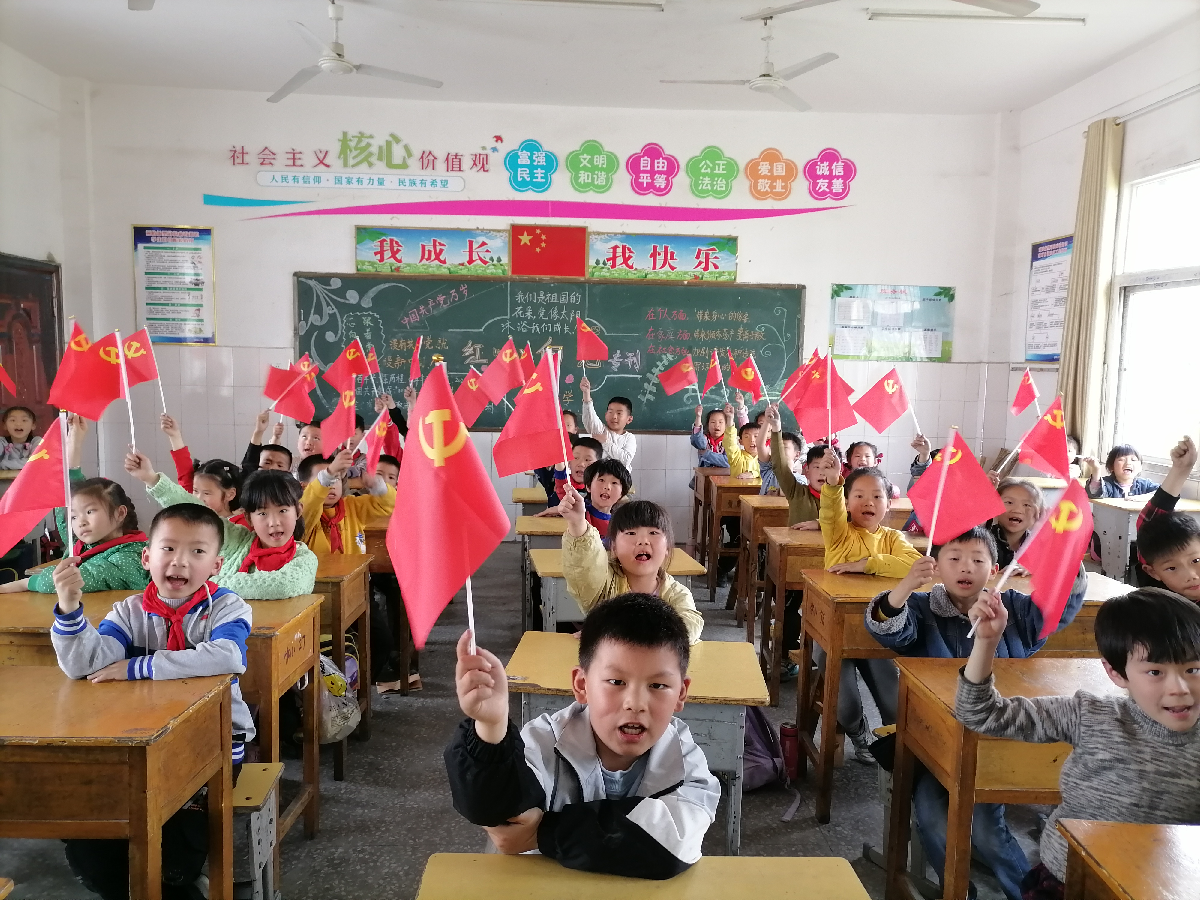 为纪念中国共产党成立100周年,培养未成年人爱党、爱国、爱社会主义的情感,让红色基因代代传承,教育引导广大未成年人听党话,坚定跟党走中国特色社会主义的道路的信念。4月27日上午,临江乡胡林小学9个教室里党旗飘飘,歌声嘹亮,三百余名少先队员共同召开了“我向党旗敬个礼”主题队会。