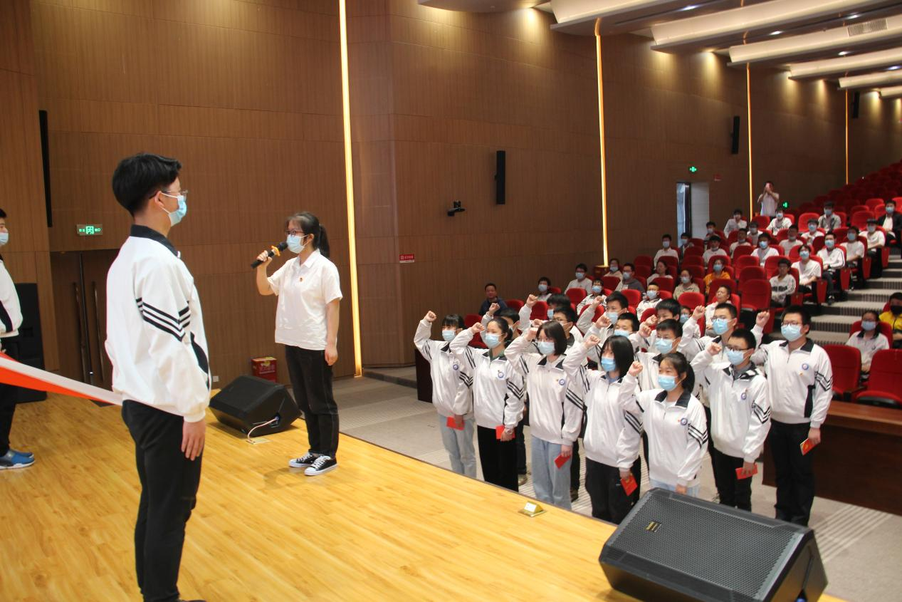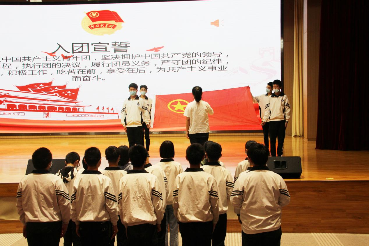 “我志愿加入中国共产主义青年团,坚决拥护中国共产党的领导,遵守团的章程……”4月30日,在葛店开发区招商展示中心,2021年新入团团员在团旗下庄严宣誓。