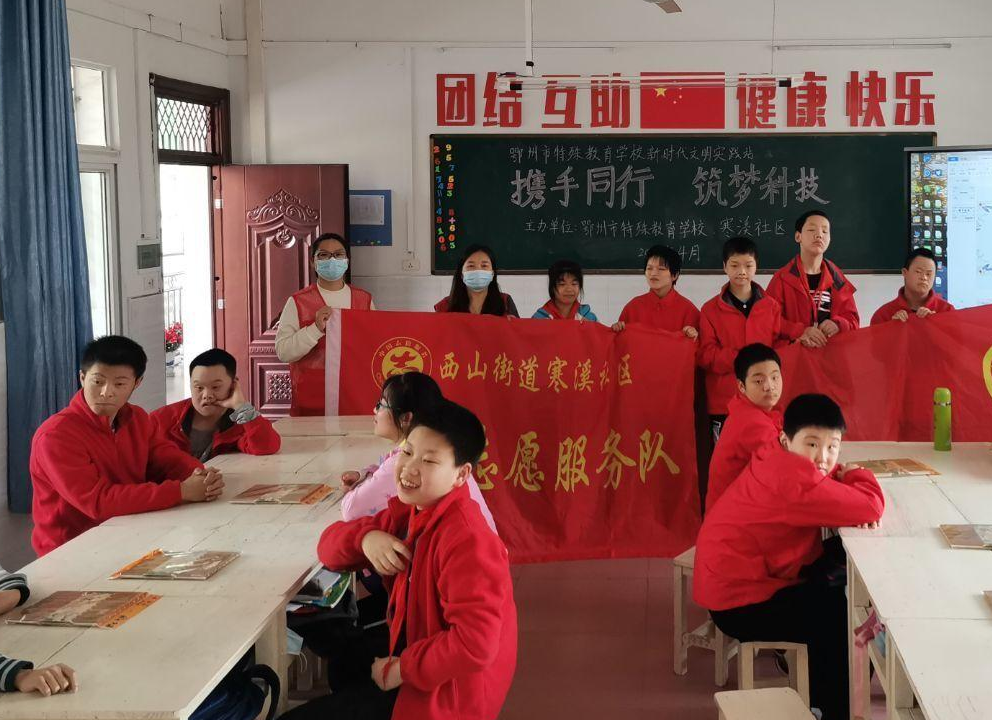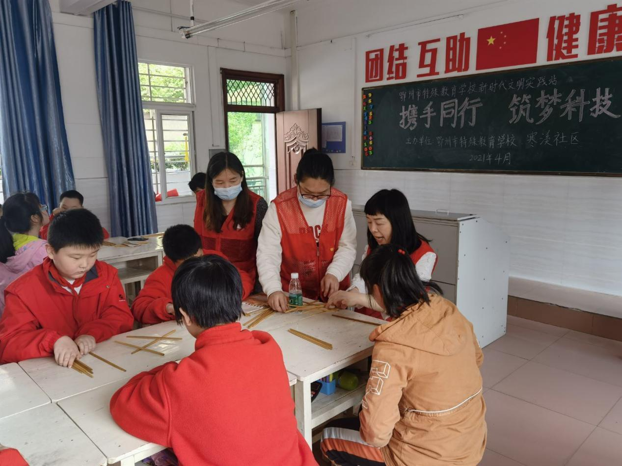为了更好地引导青少年从小热爱科技,提高青少年的创新能力与动手能力。2021年4月30日,寒溪社区联合鄂州市特殊教育学校开展“携手同行,筑梦科技”五四青年节活动。