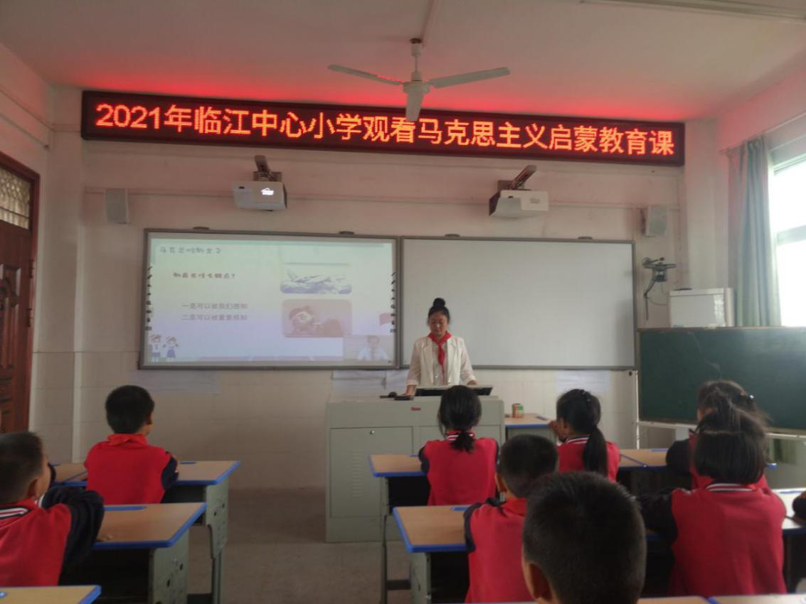 5月7日下午,临江中心小学各中队组织学生观看“马克思主义启蒙课”,培养学生爱国、爱党、爱社会主义的人生观、价值观。