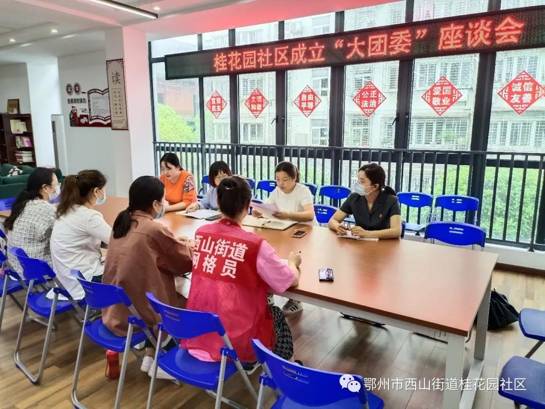 为了使团组织覆盖更多的青年,以找到青年为基础,以服务青年为关键,以凝聚青年为目标,2021年5月11日上午,团市委学少部副部长万振元、西山街道团工委负责人胡颖、桂花园社区党委书记叶娟、鄂州市法院团支部副书记陈倩、鄂州市一幼团干赵安妮及社区大团委的3位成员在桂花园社区二楼会议室召开了桂花园社区大团委成立大会。