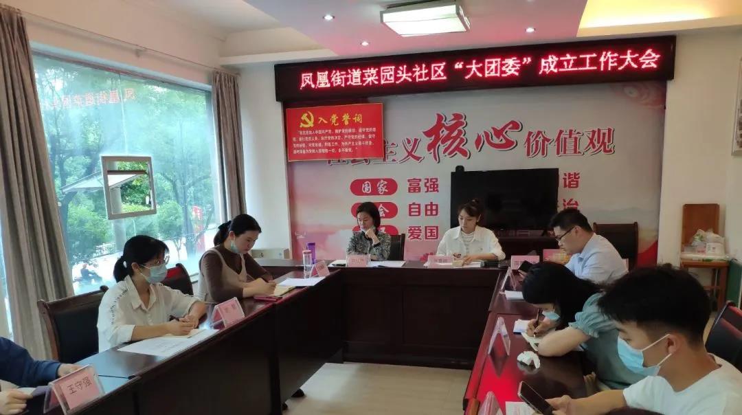 为加强区域内成员单位的交流联系、整合区域资源、立足本区域开展各类青年活动、实现对区域青年的联系和覆盖等职责,2021年5月14日上午,凤凰街道菜园头社区组织开展“大团委”成立大会。参会人员:凤凰街道团工委书记张嘉颖、社区党委书记许红艳及社区“大团委”全体成员,会议由社区团支部书记胡娟娟主持。