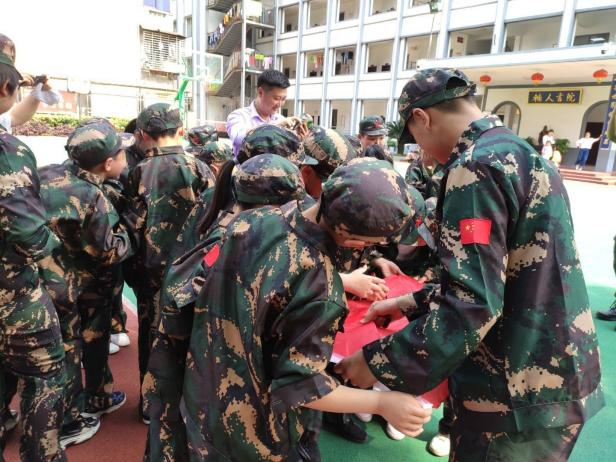 在“军事化训练”中,孩子们一排排一列列站好,围绕立正、稍息、蹲下、齐步、看齐等内容进行训练,并在老师的带领下叠好衣服,从形体到意志,严格向军人看齐,让青少年对军人的优良作风和严明的纪律有了深刻的感受。