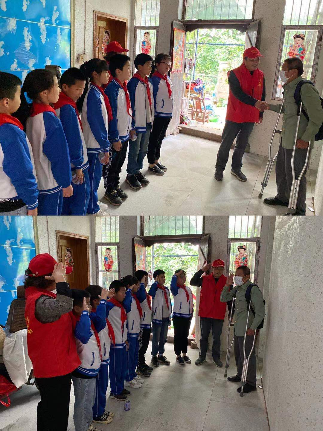 到了抗战退伍老兵谈枝树同志家中后,李杰校长和几名少先队员走到他的身边,一一与他亲切握手,并互相敬礼,他老人家非常激动,“感谢茨塘小学,没想到你们在百忙之中还亲自来看我……。”看到茨塘小学的到来,几乎带着哽咽的声音说道。“谈老辈,您身体还好吗?我今天代表茨塘小学来看望您,感谢您过去对国家和人民作出的贡献,马上八一建军节了,在此祝您节日快乐,身体健康!……”李杰校长对谈枝树说道。