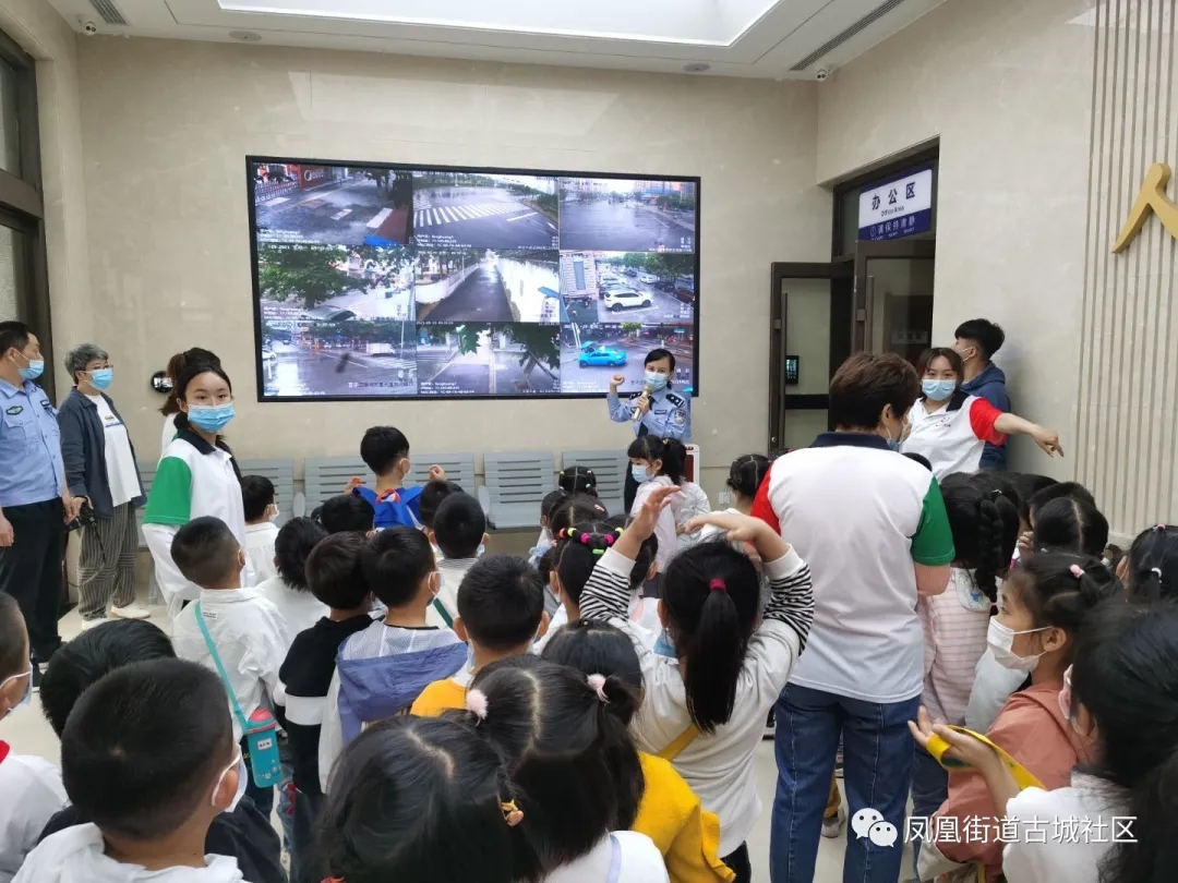 随后,古城社区志愿者、市一幼老师带领孩子们来到了凤凰派出所,零距离体验警营文化。派出所警官向未成年人介绍了警察叔叔阿姨们的日常工作,带领他们参观了警区办公室、监控室、户籍大厅和询问室等办公场所,展示了警用套装,并结合案例就未成年人现阶段存在的安全防范、自我保护、禁毒等问题对青少年们进行了安全教育。“在我的记忆里,警察是非常厉害的‘超人’,警察抓小偷,与坏人‘对战’,我也想当一名超棒的警察!”孩子们天真的说道。