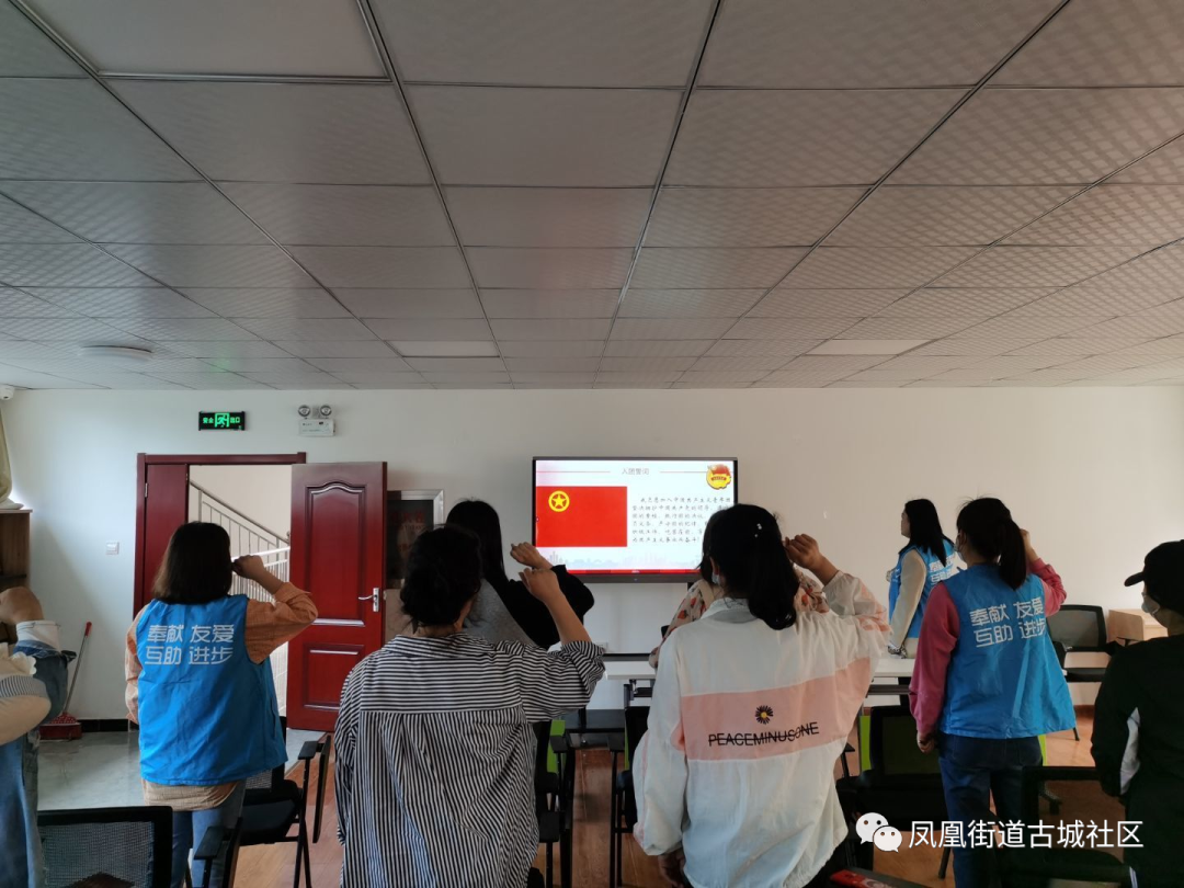 在嘹亮的团歌声中,大会拉开了帷幕。在社区团支部书记的带领下,团员们面对团旗,重温入团誓词。