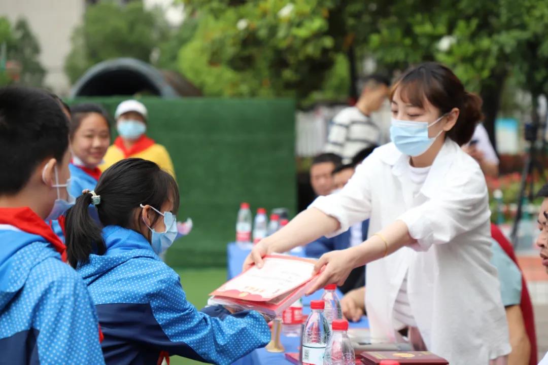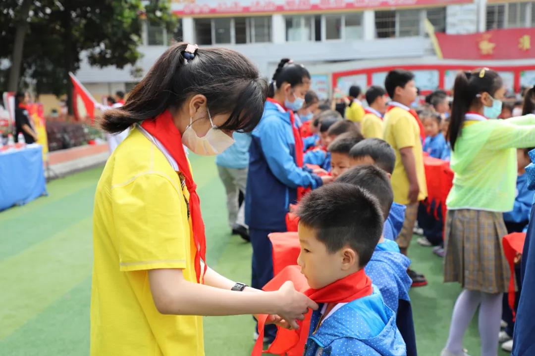 最后,校少工委向新建中队辅导员发放聘书并授中队旗,在全体呼号后,洋澜少先队入队仪式圆满落幕。