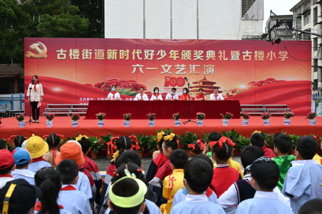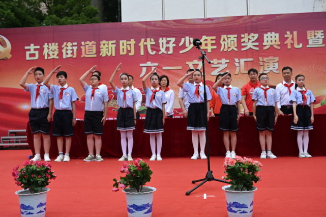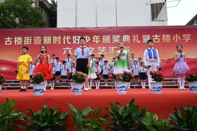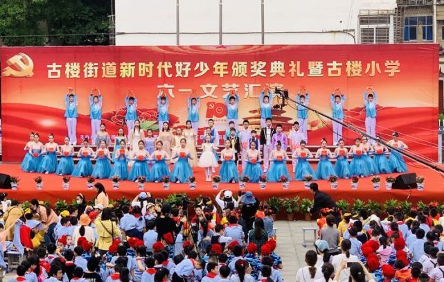 5月27日上午,古楼街道古楼小学举行红领巾奖章一星章颁章仪式暨六一文艺汇演活动,聚焦少先队政治启蒙和价值观塑造主责主业,突出党团队的血脉关系和红色基因传承,激励少先队员在少先队组织评价激励体系引领下,爱党爱国爱家乡,志存高远、文明有礼、追求真知,健康向上成长,做中国特色社会主义事业的合格建设者和接班人。