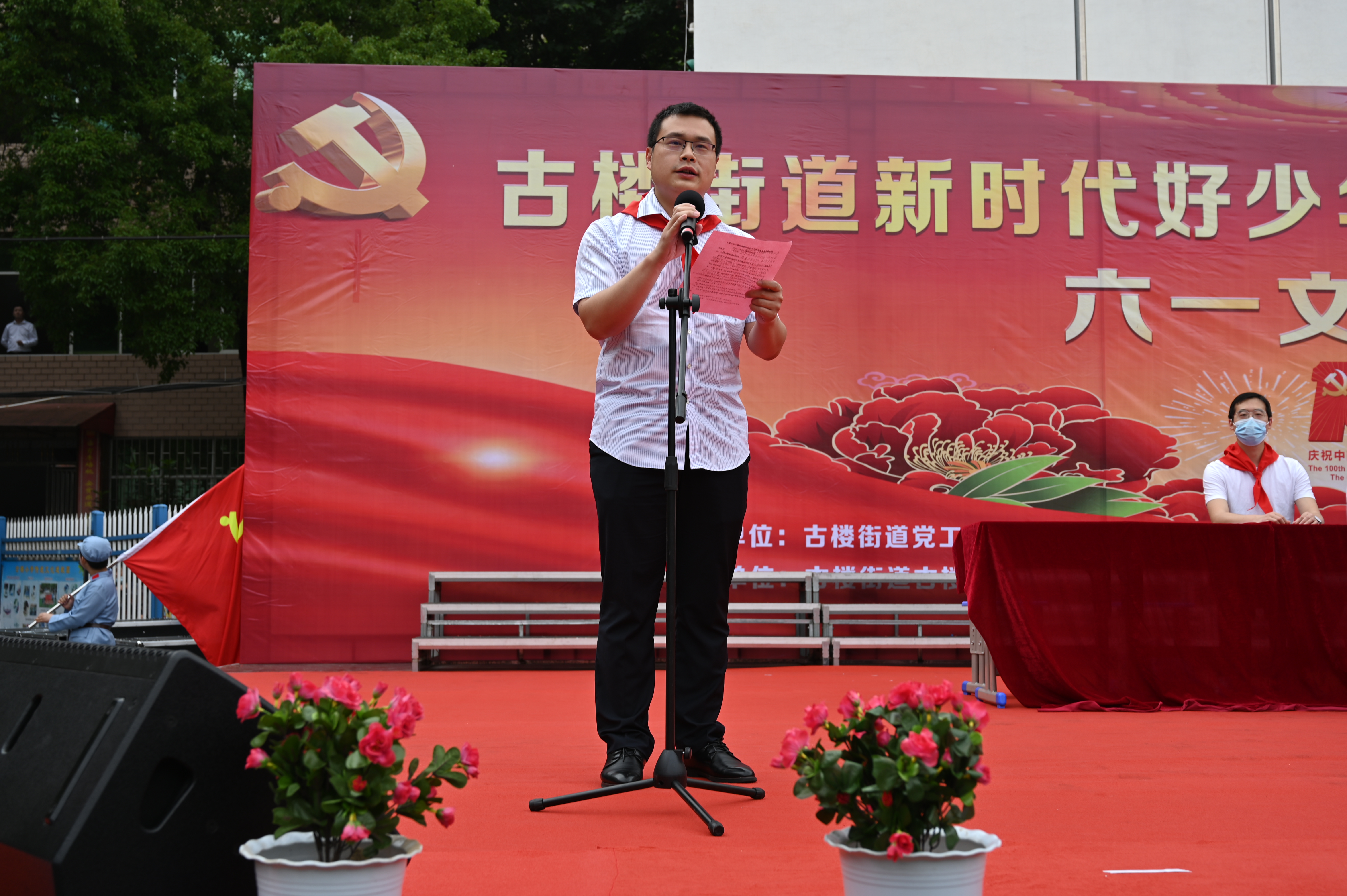 街道中心学校校长刘文生同志宣读“古楼街道新时代好少年表彰决定”、古楼小学“红领巾奖章个人一星章”和“红领巾奖章集体一星章”名单,并向各位优秀中队辅导员和优秀少先队员表示祝贺,希望受表彰少先队员要起好模范带头作用,继续展现少先队员的风采。