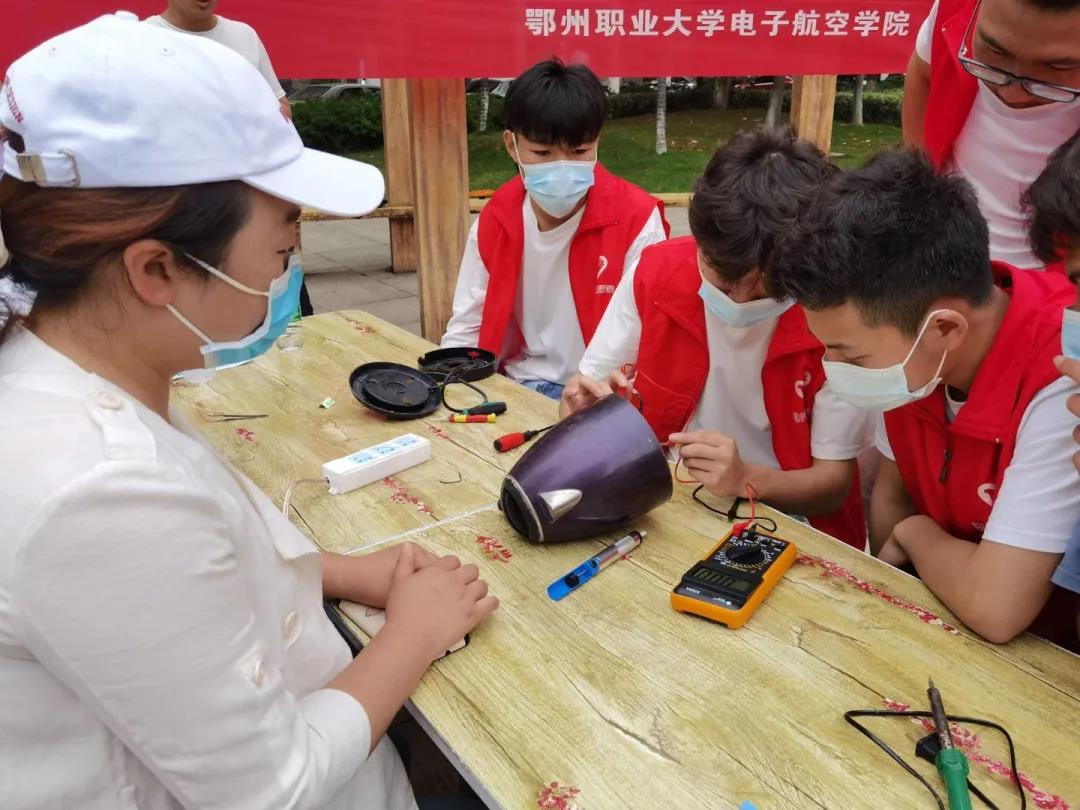 活动现场,20余名由大学服装与艺术、电子与电气工程、医学等学院学生组成的温暖社区志愿服务队,正运用自身所学专业知识为居民群众提供免费衣服、裤子、相关织物的缝补、家用小电器维修以及血压测量等便民服务。闻讯早早赶来的居民们从家中拿来的衣物、电风扇、电热水壶等物品摆满了服务台,只为让青年志愿者们“面诊”。小区居民李婆婆说:“感谢青年志愿者为我修好了热水壶,我正愁找不到门店进行修理,真是帮我解决了大难题,希望社区以后经常开展此类有意义的活动!”