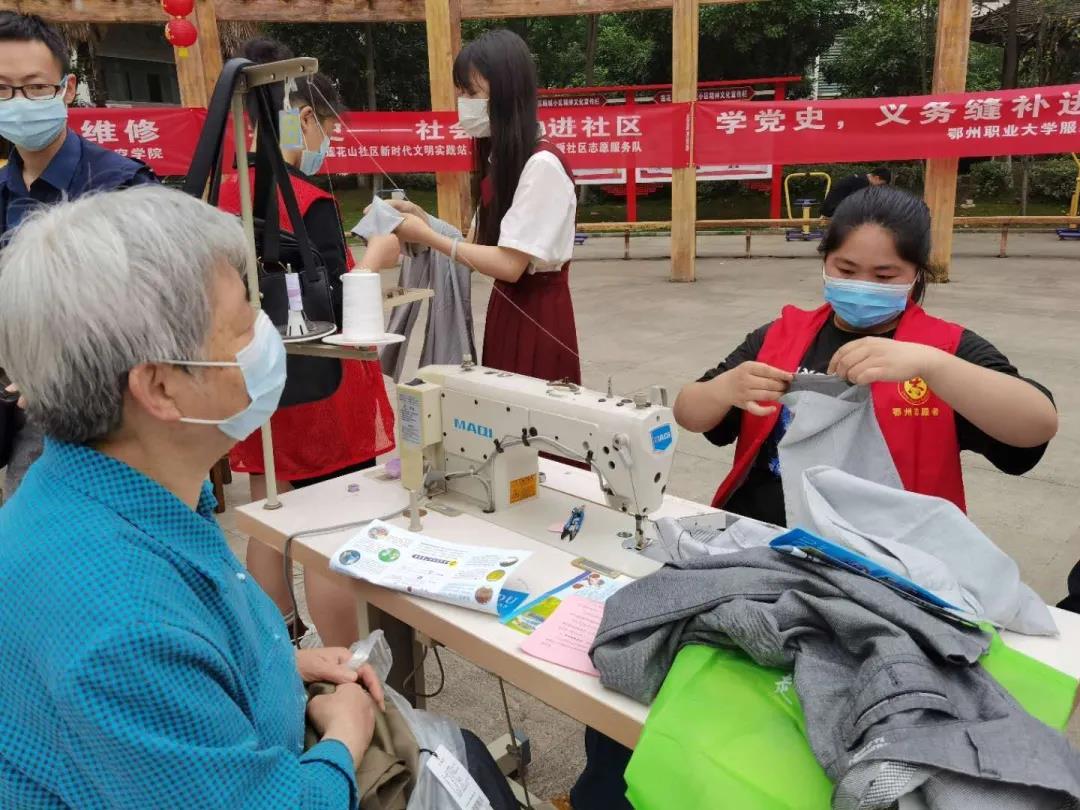 5月28日上午,莲花山社区团支部联合社区”大团委“成员单位--鄂州职业大学,在辖区西昌曦城小区开展“义务织补、家电维修、健康体检”青年志愿服务进社区活动。