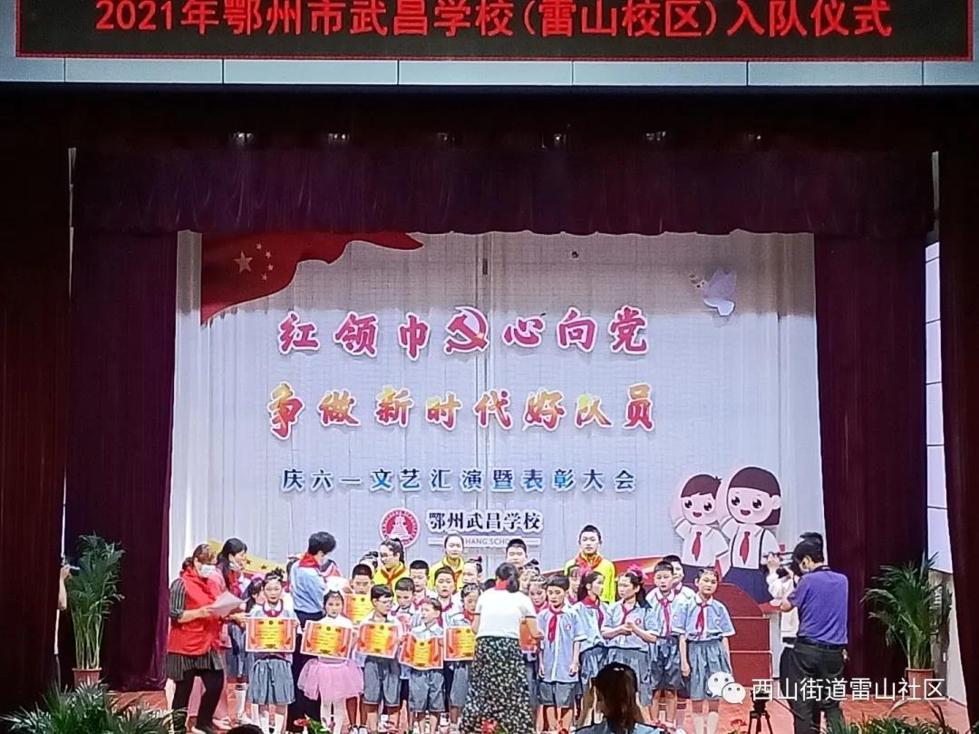 2021年5月28日上午,雷山学校报告厅热闹非凡,这里举行着“红领巾心向党,争做新时代好队员”主题庆六一文艺汇演暨表彰大会,少先队的旗手们迈着坚定的步伐缓缓走来,充满朝气的少先队员们,用响亮的声音唱起了中国少年先锋队队歌。升旗仪式后,雷山社区民警胡敏、社区书记董玉萍同志向获评的“新时代好少年”颁发荣誉证书,活动现场,雷山社区“大小拉小手 益路同行”的志愿者们还向孩子们送上了学习用品、糕点等节日礼物,送上祝福。