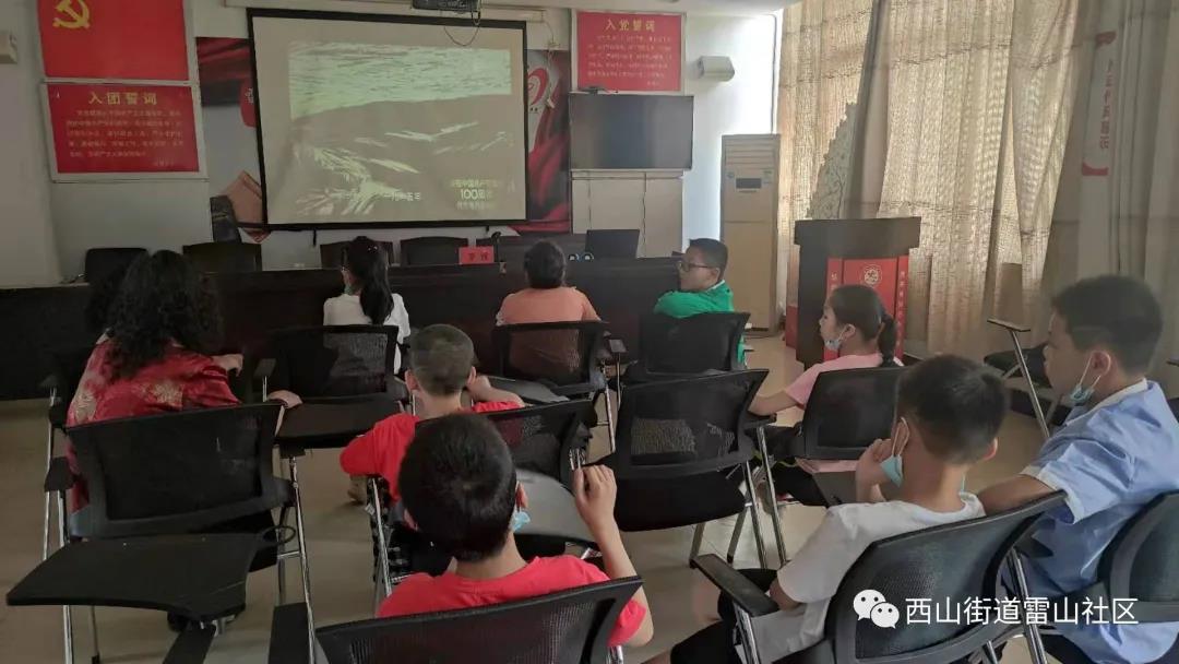 雷山社区还组织辖区雷山小学部分学生及家长集中观看了革命历史题材剧《觉醒年代》的节选片段,观影前,社区文化志愿者向参与活动的家长、小朋友们介绍了本片的主要内容,通过影片告诉大家中国共产党是由怎样一群人创建的?他们的初心是什么?马克思主义在中国的传播,何处是源起?中国为什么要走社会主义道路?