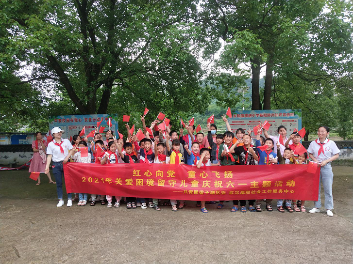 每年的6月1号是国际儿童节,在国际儿童节来临之际,为了让孩子们感受节日气氛,开心地度过属于他们的节日,2021年5月29日,共青团梁子湖区委、武汉市爱熙社工服务中心为太和镇狮子口村和胡进村的70名困境留守儿童开展“红心向党·童心飞扬”--梁子湖区关爱困境留守儿童庆“六一”儿童节主题活动。