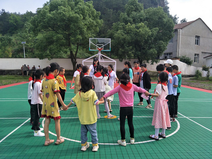 活动开始之前工作人员带着孩子们布置场地、五彩的气球装点节日气氛,孩子们个个参与其中、乐在其中。活动在破冰游戏“大脑蹲”中拉开序幕,接着是拔河、三人两足、你比我猜游戏,通过一系列团队游戏孩子们相互熟悉和增加了默契度。虽然天气炎热,但游戏时间在孩子们欢乐的笑声中很快就过去,随后工作人员带着孩子们学习了最新的《中华人民共和国未成年人保护法》。
