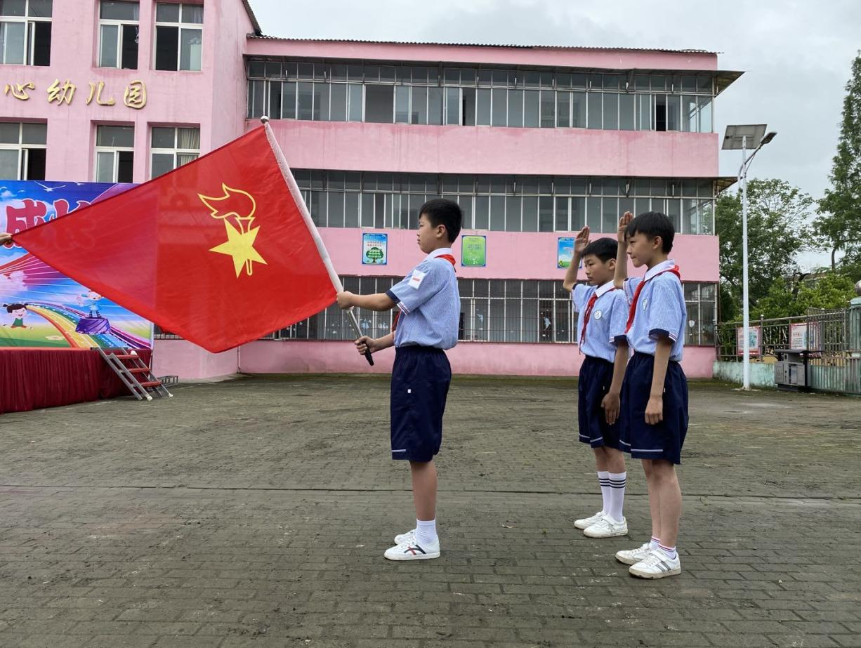 入队仪式伴随着嘹亮的国歌声在学校大操场搭的舞台上拉开帷幕,全体少先队员在出旗曲中行队礼,队员们为莅临学校的几位中心学校领导敬献了鲜艳的红领巾。接着,大队辅导员杨老师宣读了2021年21名正式加入少年先锋队的学生名单;老队员代表发言,对新队员表示祝贺与鼓励;21名老队员为新队员佩戴红领巾,全校师生一起见证了这个神圣的时刻;新队员代表也表决心,立志成为“共产主义接班人”。然后,少先队大队长带领21名新队员宣誓,大家都表示要珍惜胸前的领巾,好好学习,做优秀少先队员。